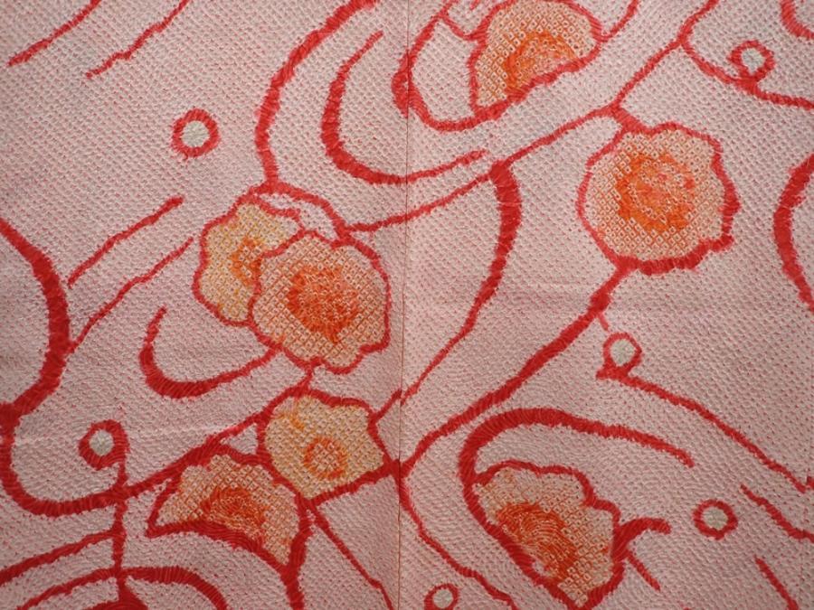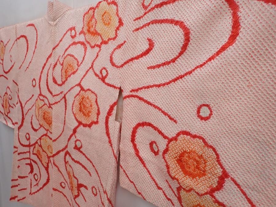 6113T03z490 Vintage Japanese Kimono Silk SHIBORI HAORI Flower Light pink