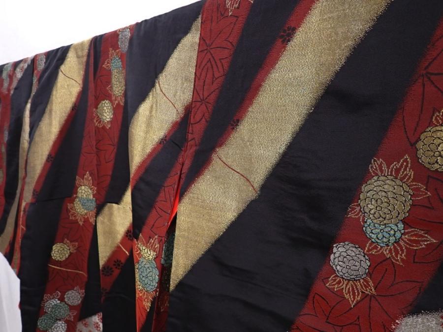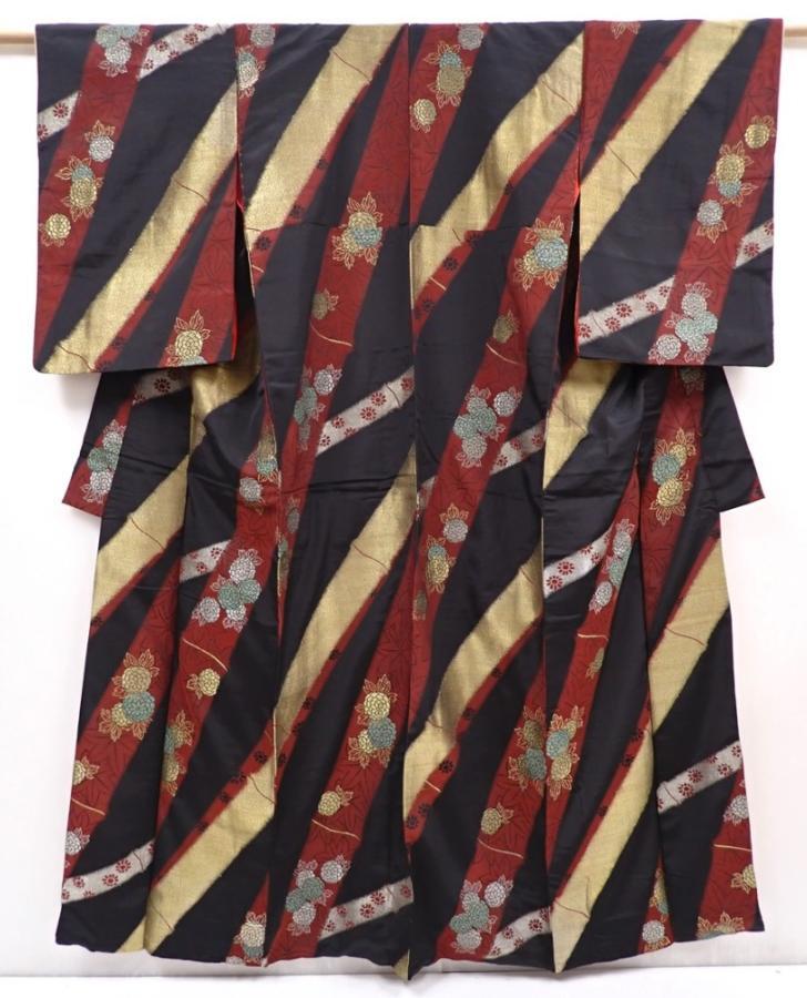 6113T07z890 Antique Japanese Kimono Silk KOMON Bamboo Black