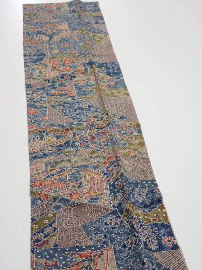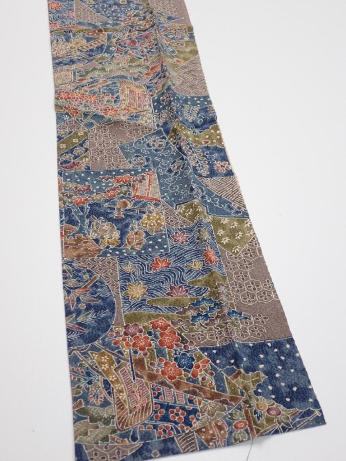 3i09z30 Japanese Kimono Silk FABRIC Heian noble Navy 36.2x6.9