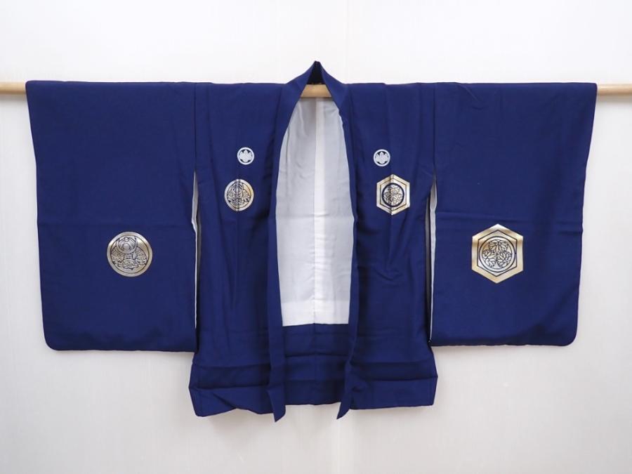 6114T01z400 Vintage Japanese Kimono Synthetic Boy's HAORI Kabuto Navy