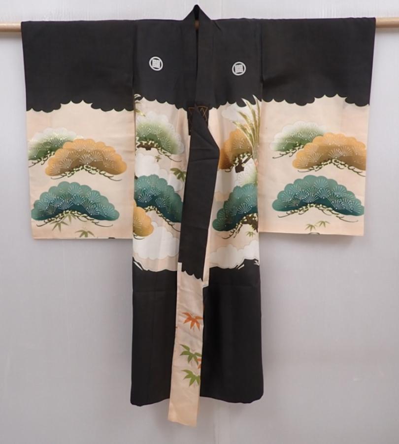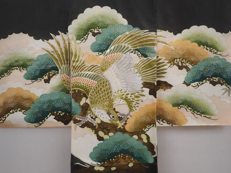 6114T03z270 Vintage Japanese Kimono Silk Boy's Hawk Black