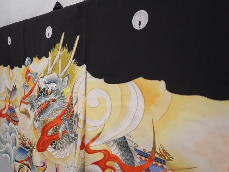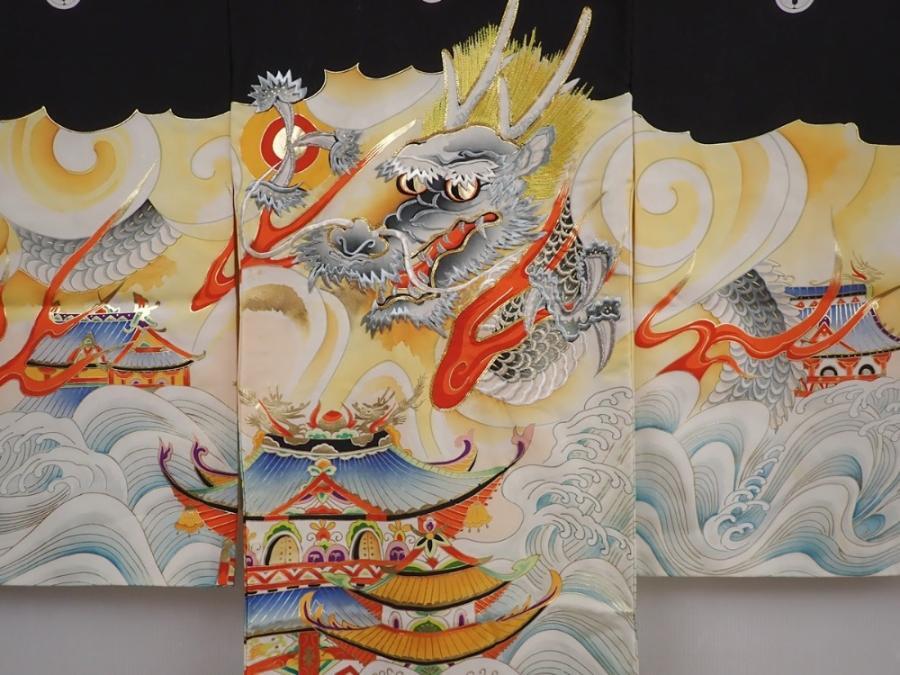 6114T05z300 Vintage Japanese Kimono Silk Boy's Dragon Black