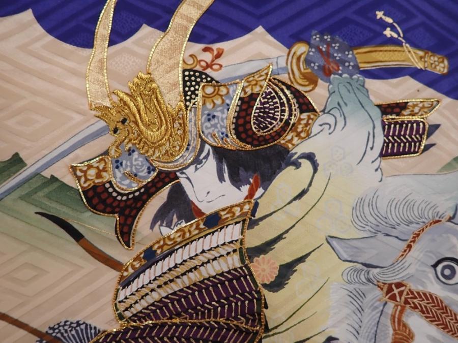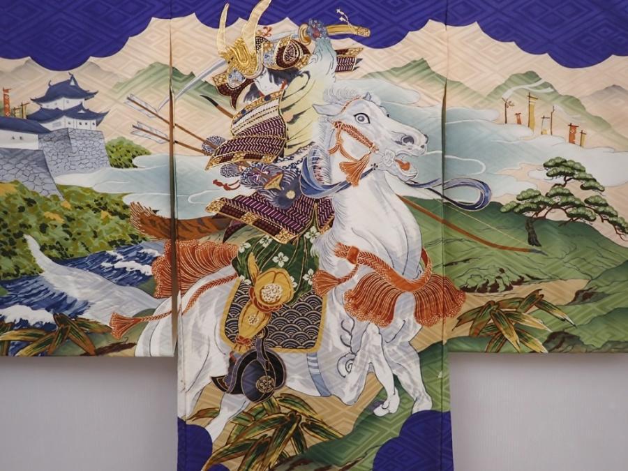 6114T06z400 Vintage Japanese Kimono Silk Boy's Samurai Dark lavender blue