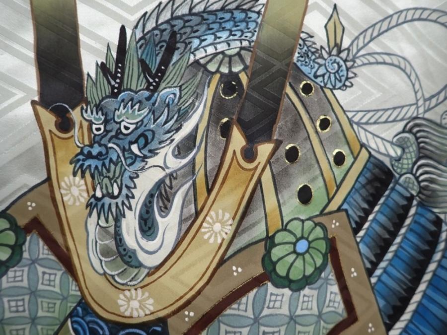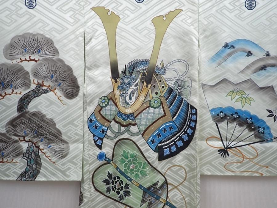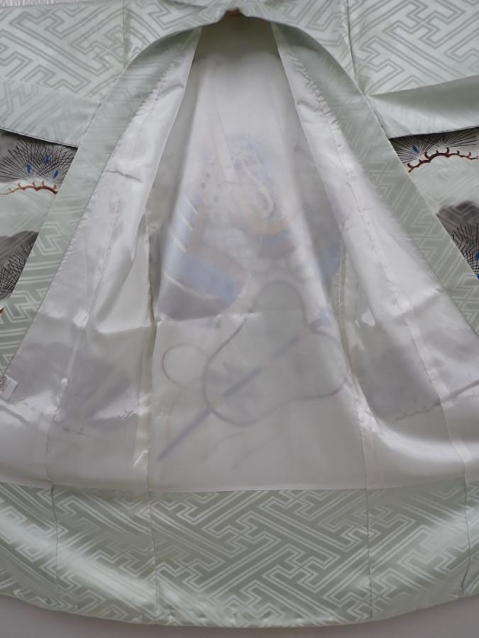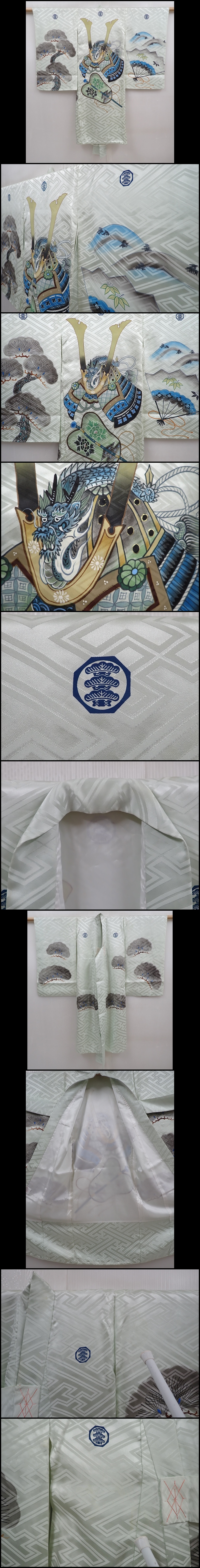 6114T08z410 Vintage Japanese Kimono Silk Boy's Kabuto Soft green