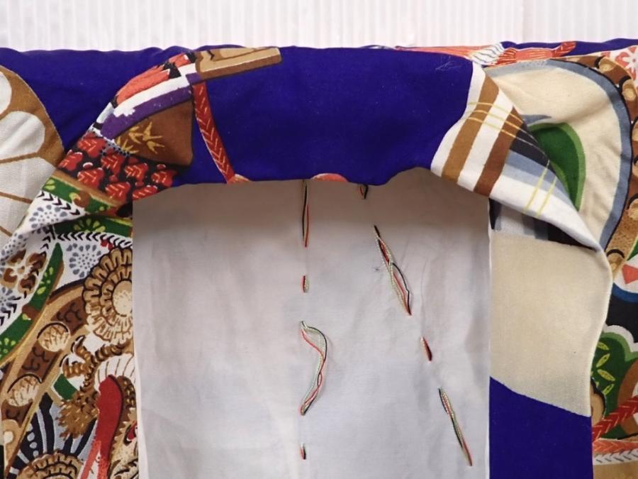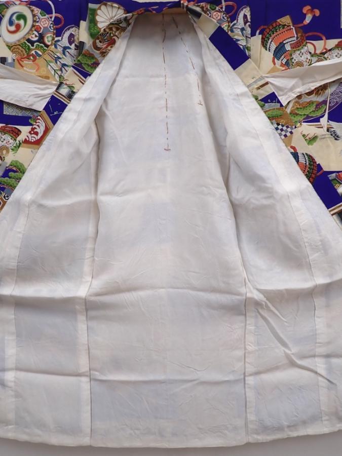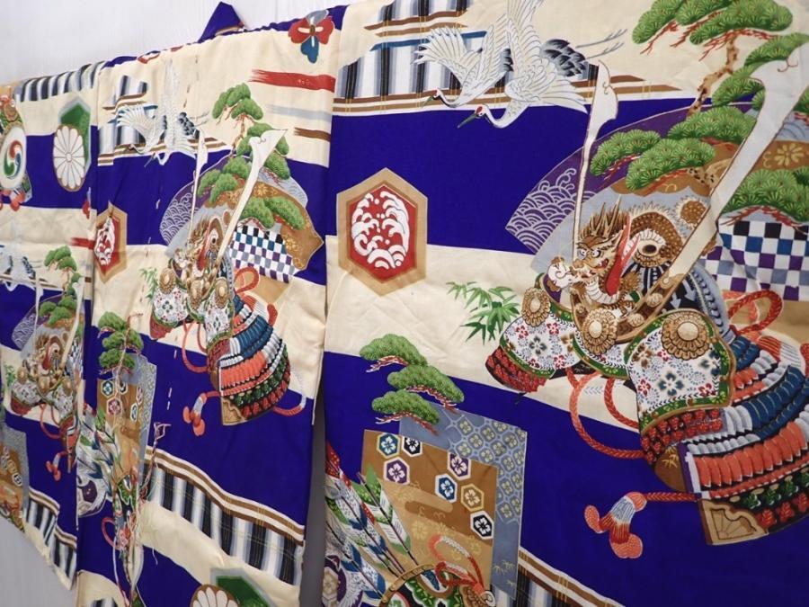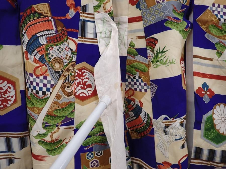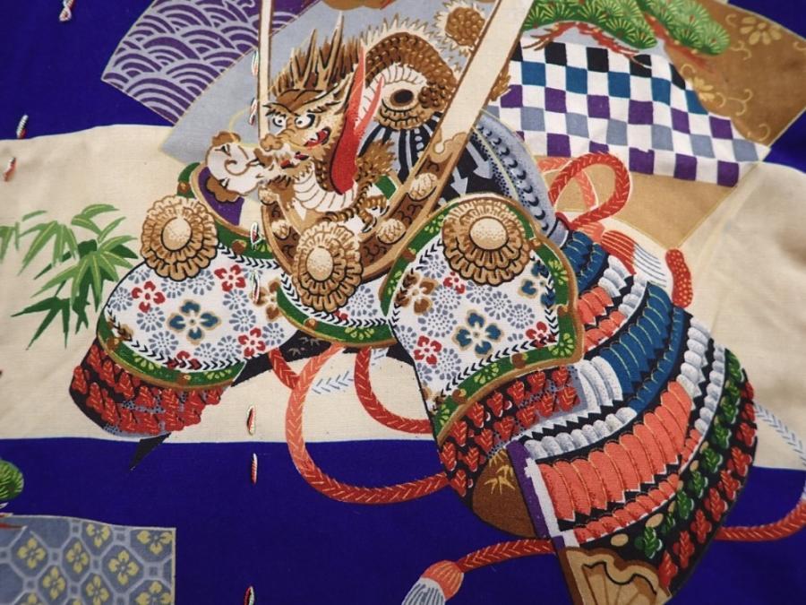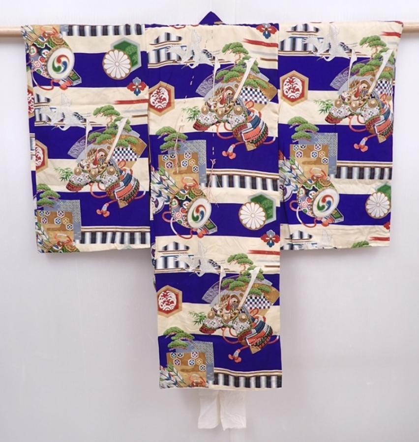 6114T09z280 Vintage Japanese Kimono Silk Boy's Kabuto Dark lavender blue