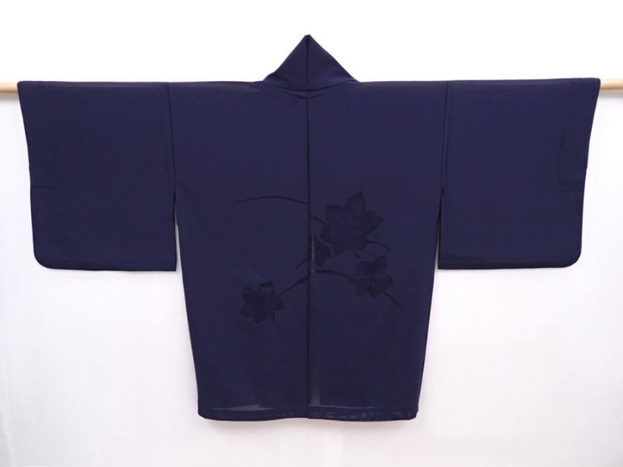 6115T01z330 Vintage Japanese Kimono Silk See through DOCHUGI Dark navy