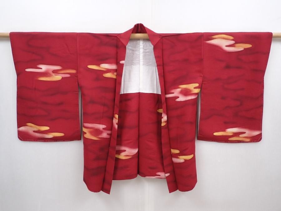 6115T03z510 Vintage Japanese Kimono Silk HAORI Cloud Wine red