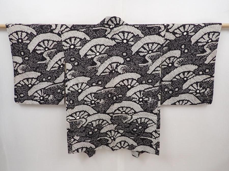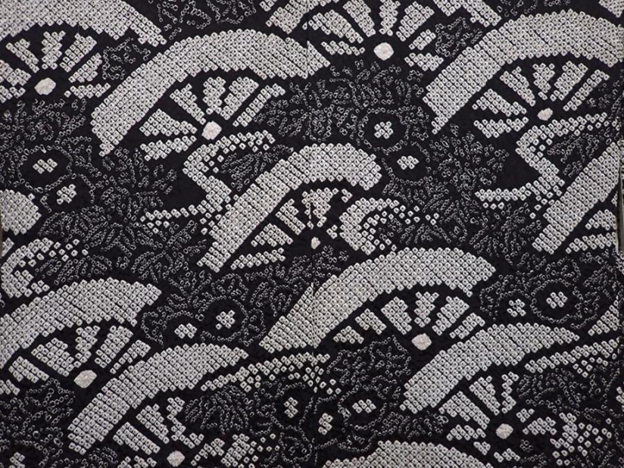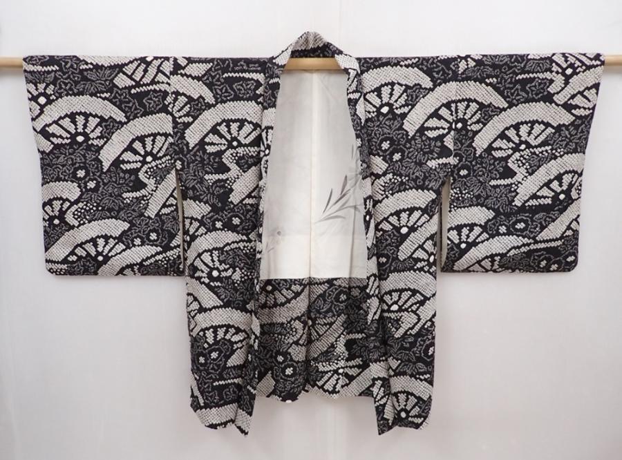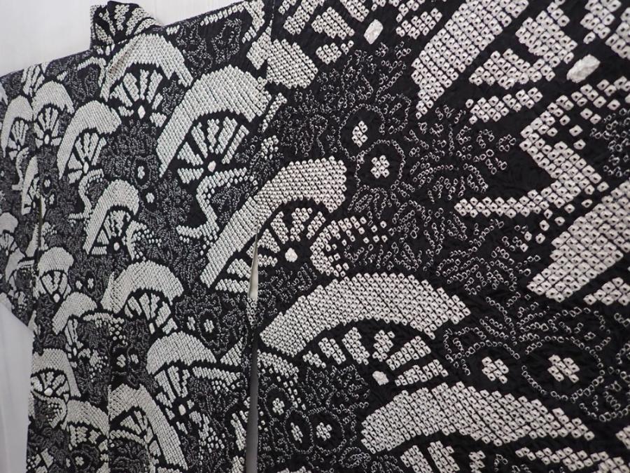 6115T04z560 Vintage Japanese Kimono Silk SHIBORI HAORI Black