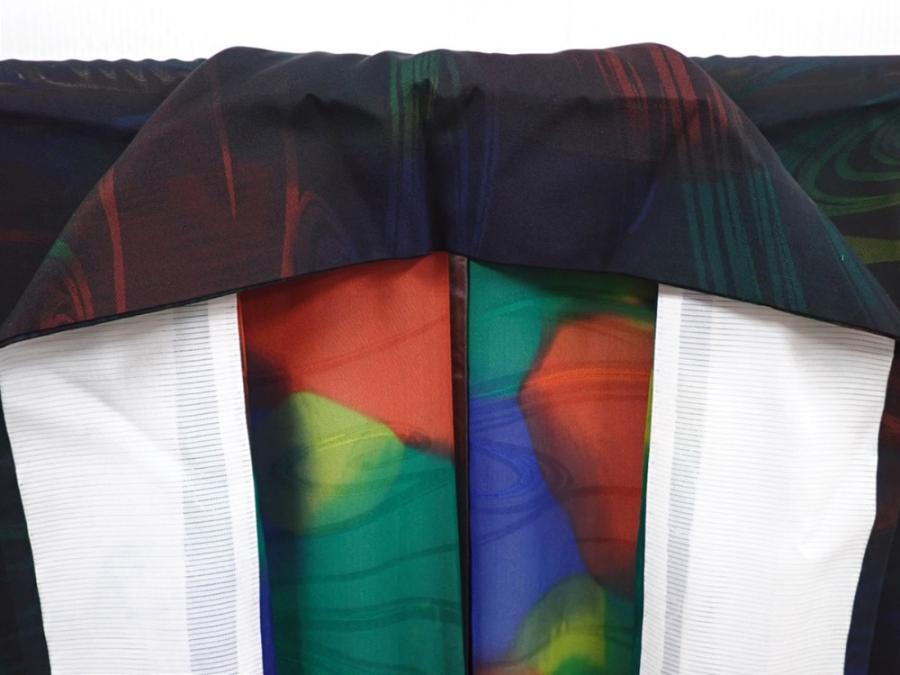 6115T09z480 Vintage Japanese Kimono Silk See through KOMON Stream Black