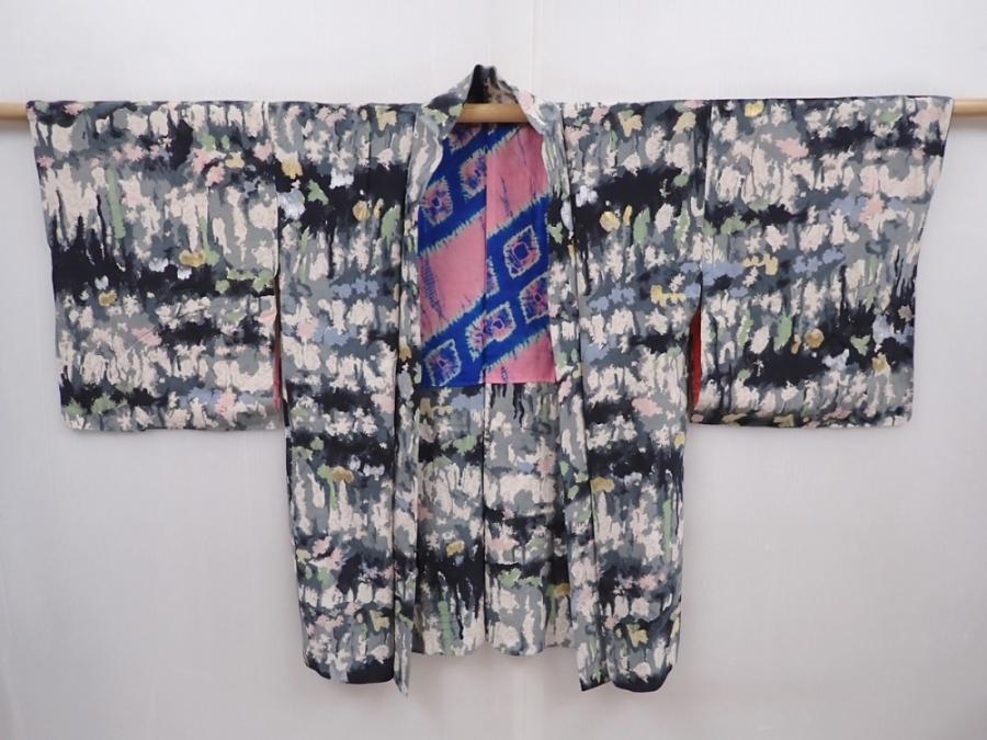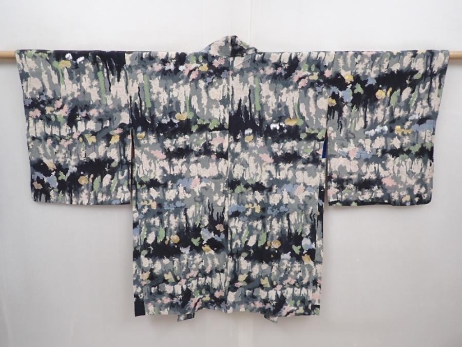 6119T01z420 Vintage Japanese Kimono Silk HAORI Black