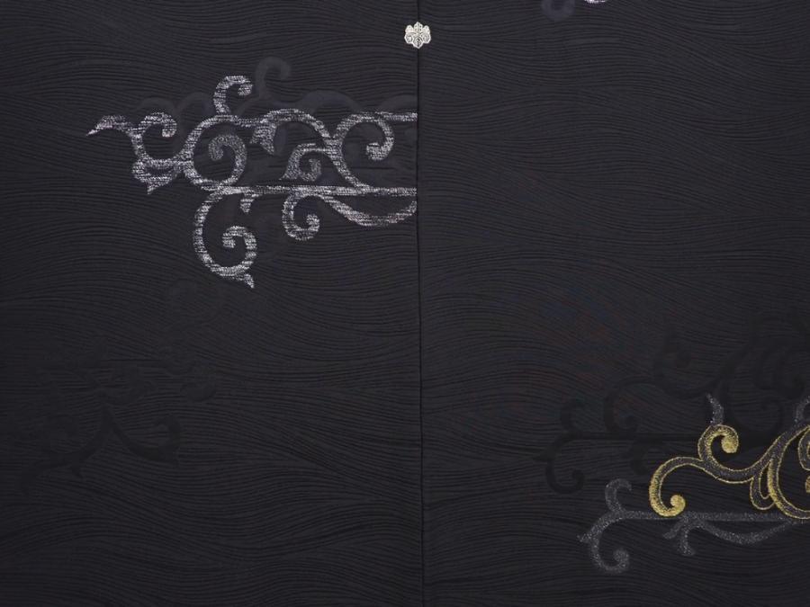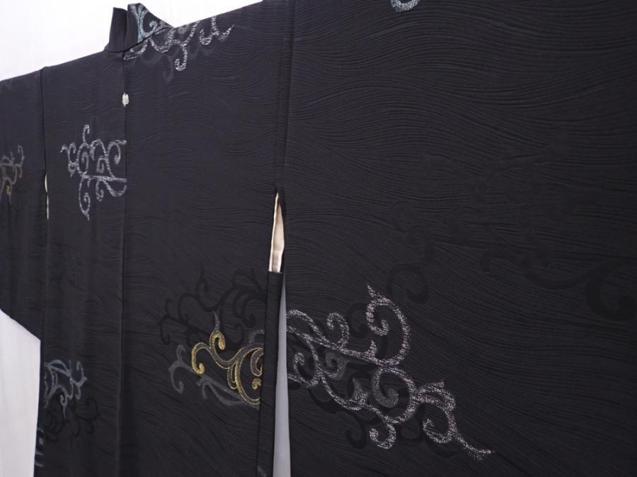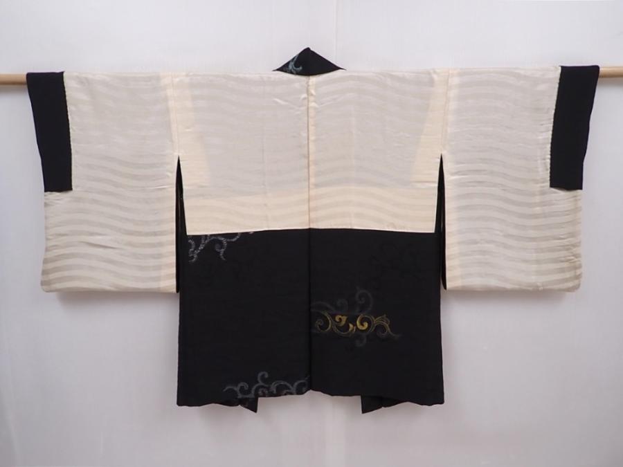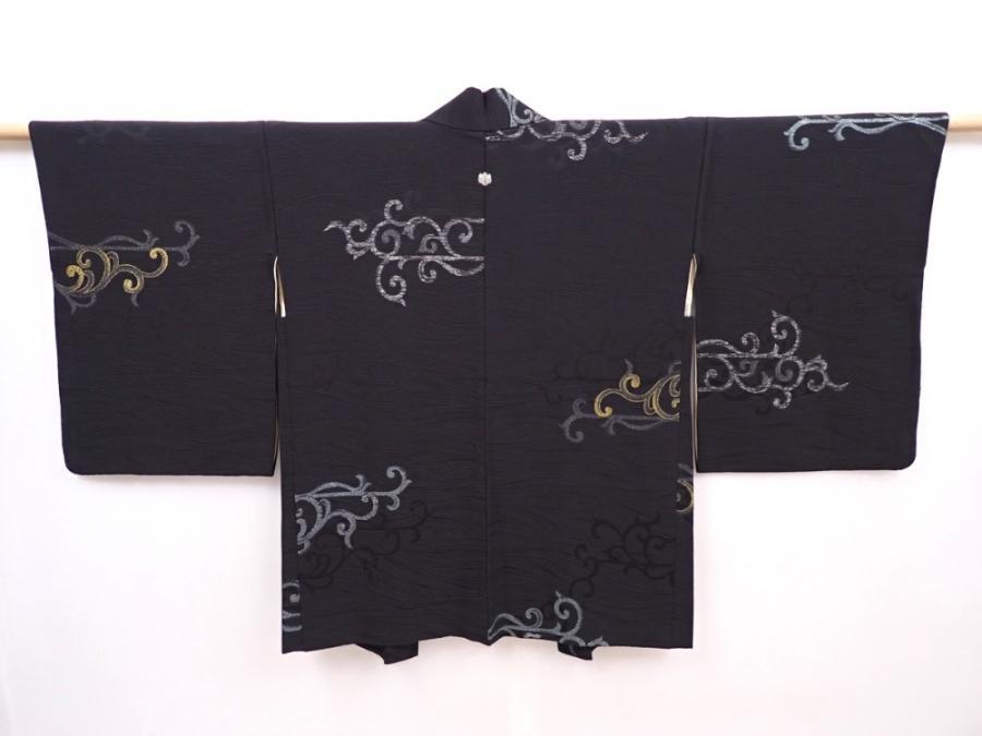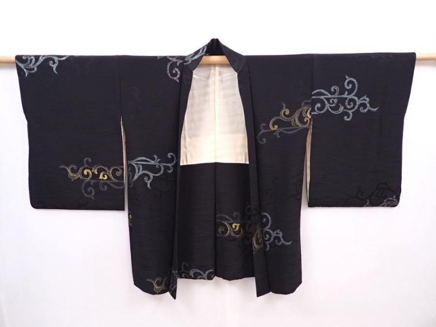 6119T03z620 Vintage Japanese Kimono Silk HAORI Karakusa Black