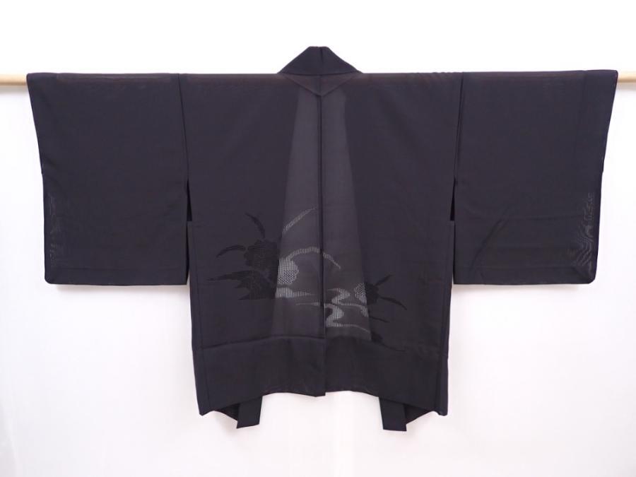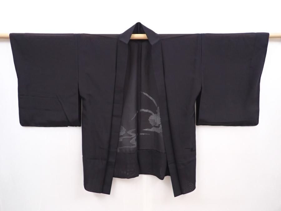 6120T01z320 Vintage Japanese Kimono Silk See through HAORI Flower Black
