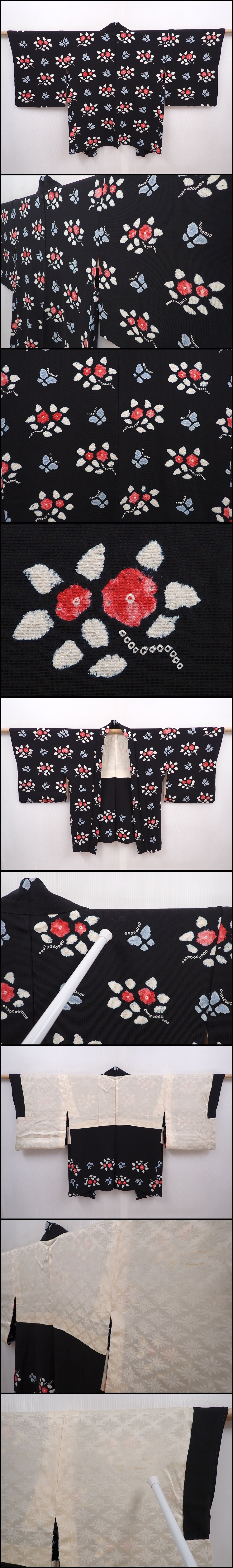 6120T03z590 Vintage Japanese Kimono Silk HAORI Butterfly Black