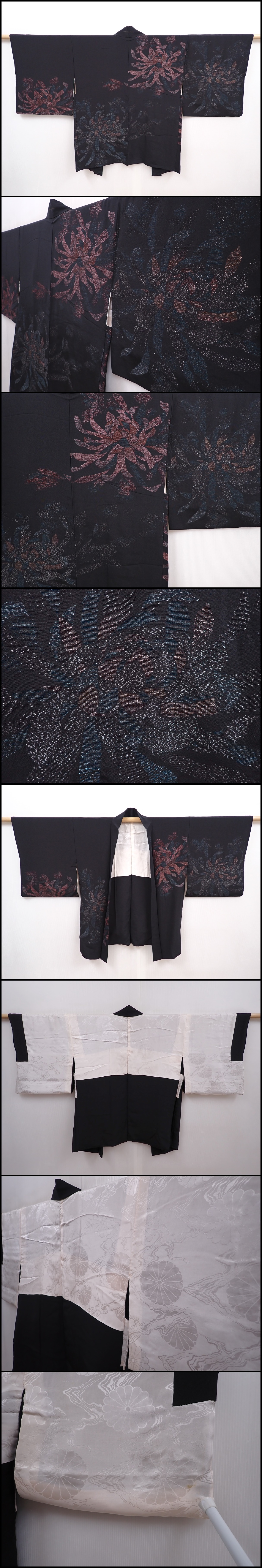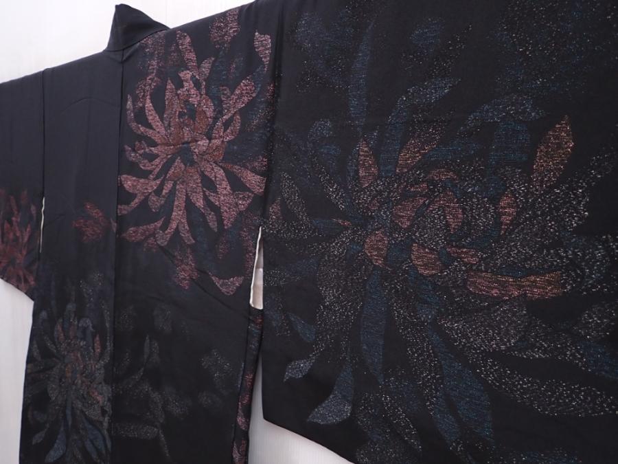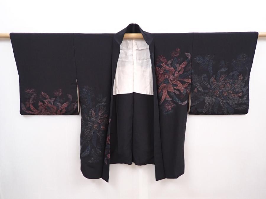 6120T07z580 Vintage Japanese Kimono Silk HAORI Flower Black