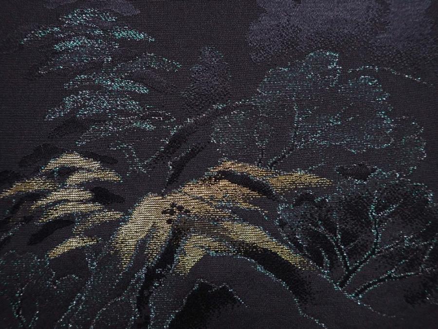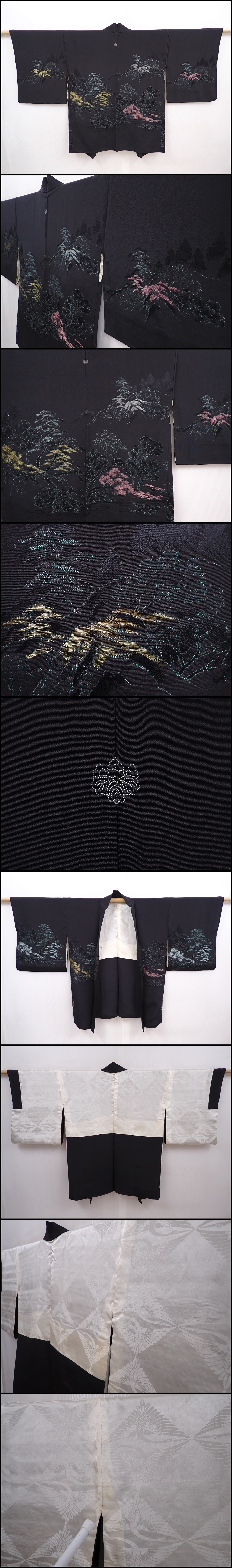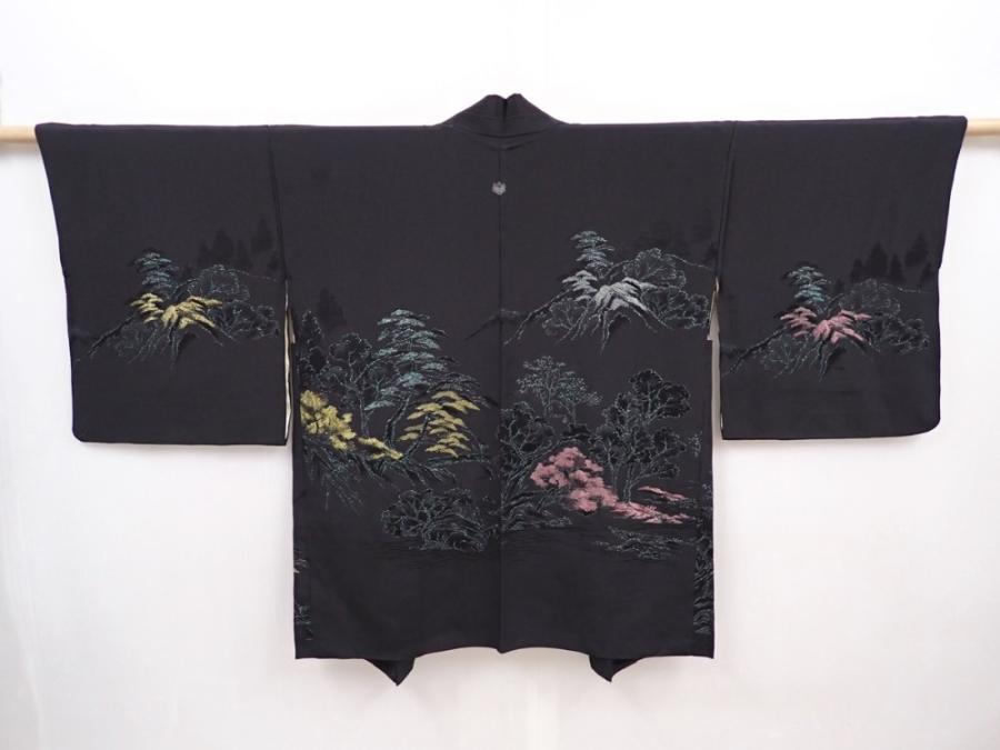 6120T08z480 Vintage Japanese Kimono Silk HAORI Scenery Black