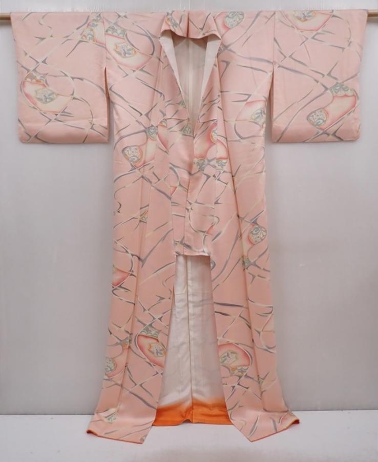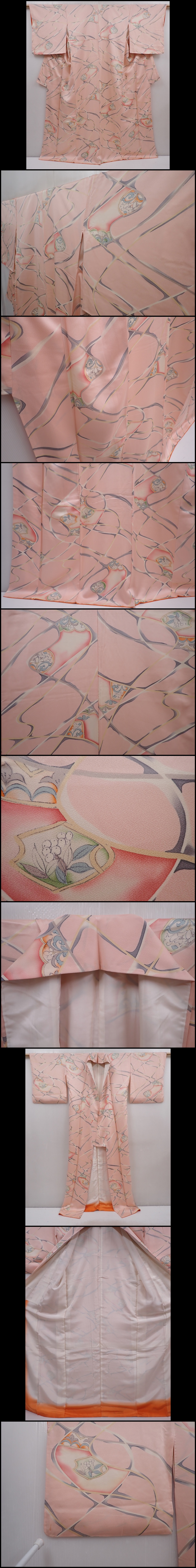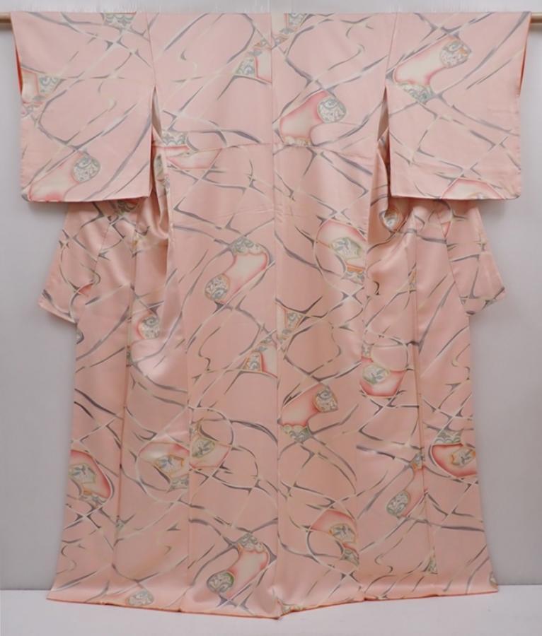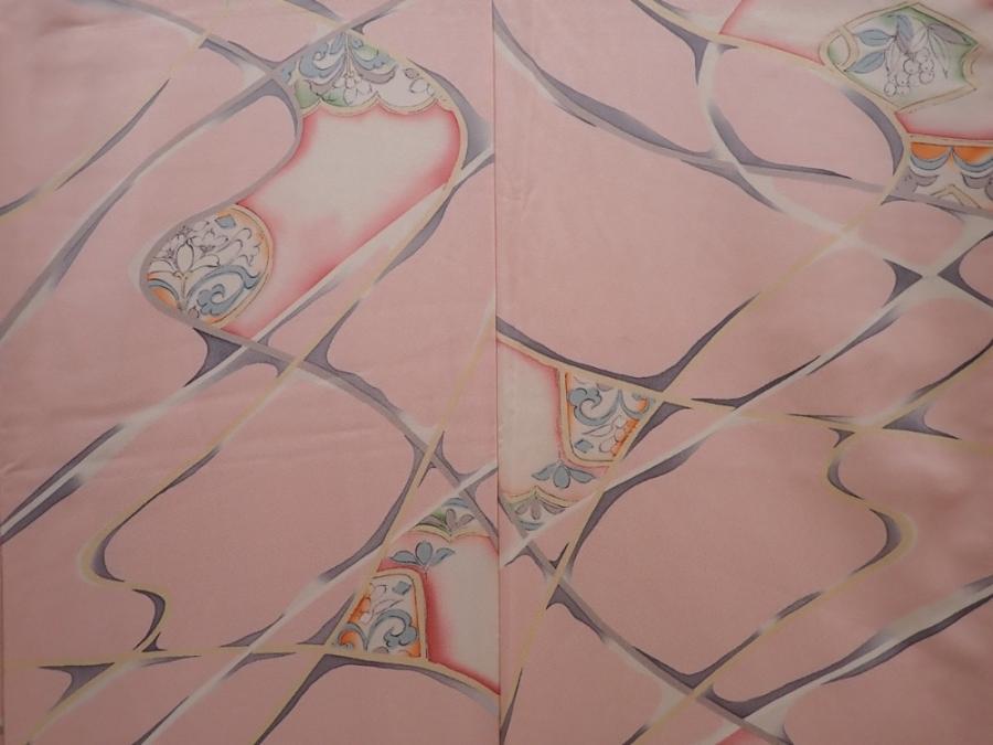 6120T10z850 Vintage Japanese Kimono Silk KOMON Flowers Pink