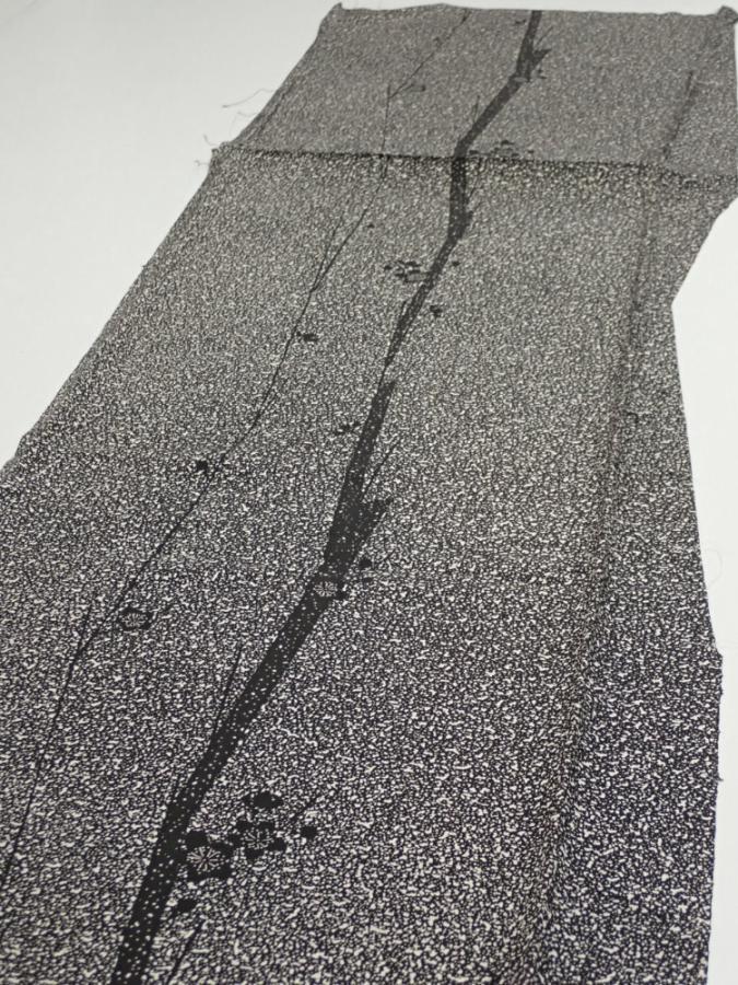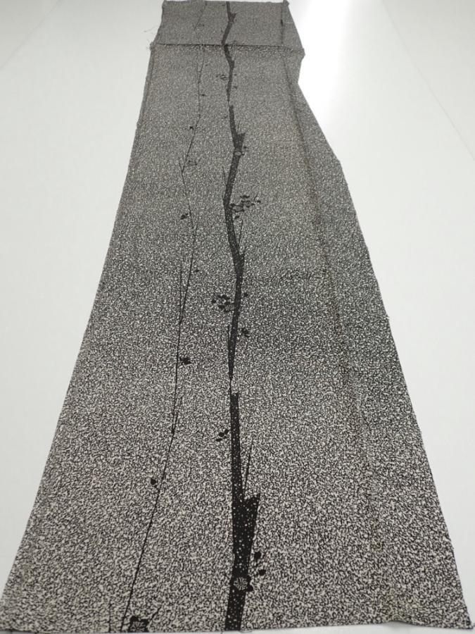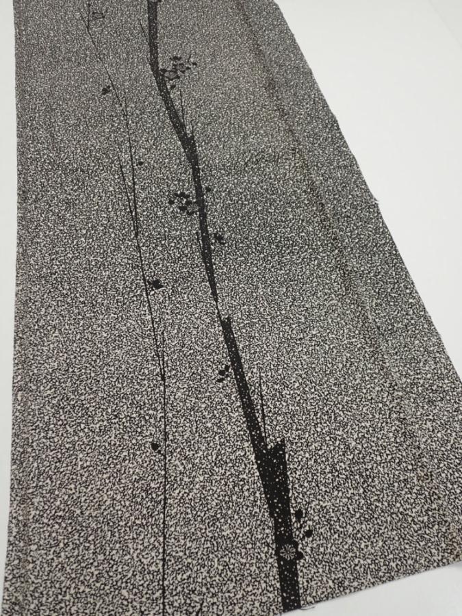 2Q04z90 Japanese Kimono Silk FABRIC Plum tree Black 64.6x14.8