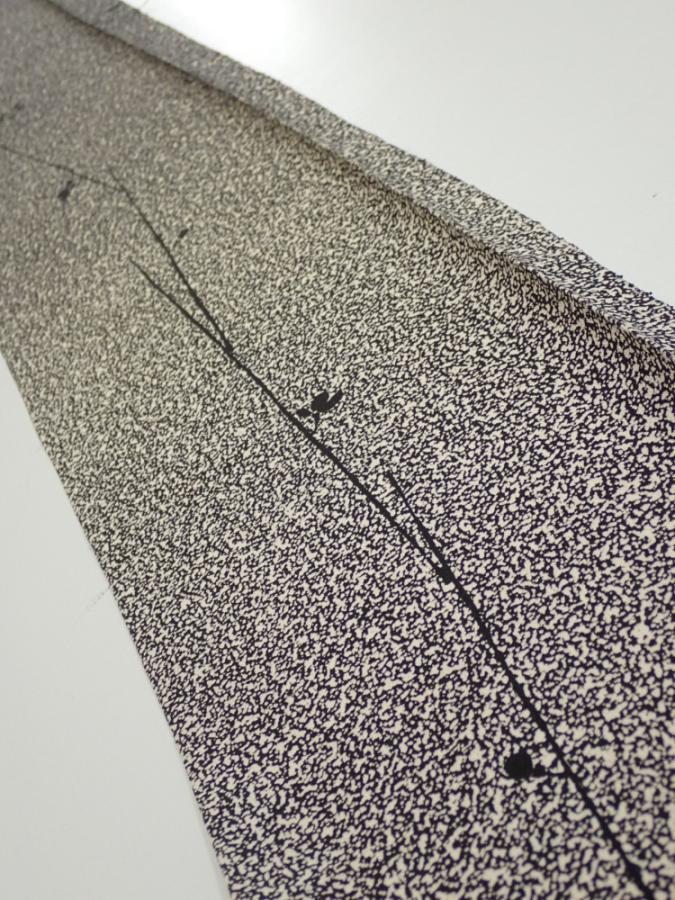 2Q06z40 Japanese Kimono Silk FABRIC Plum branch Black Off-white 61.0x7.3