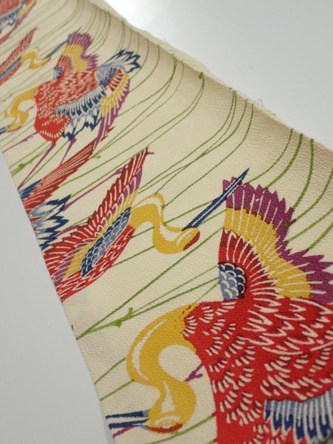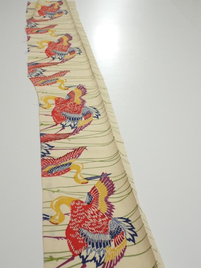 2N07z50 Japanese Kimono Crepe Silk FABRIC Crane Light cream 60.6x7.1