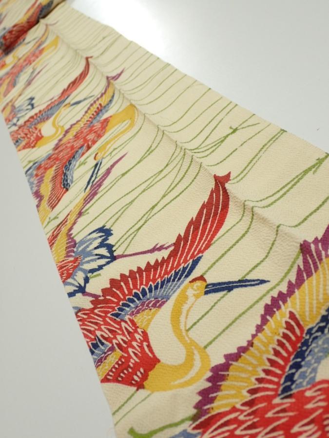 2N09z60 Japanese Kimono Crepe Silk FABRIC Crane Light cream 83.5x6.9