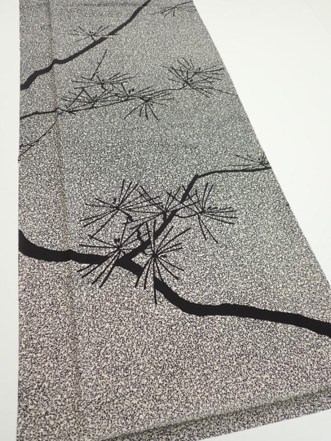 2N04z90 Japanese Kimono Silk FABRIC Pine Black Off-white 64.6x14.8