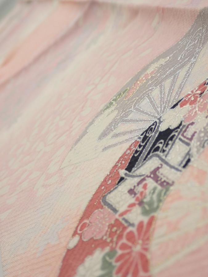 2N10z30 Japanese Kimono Silk FABRIC Sensu Pink 38.2x6.7