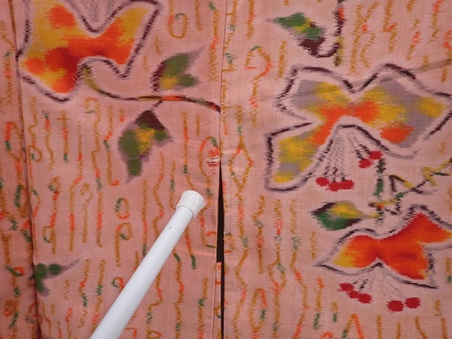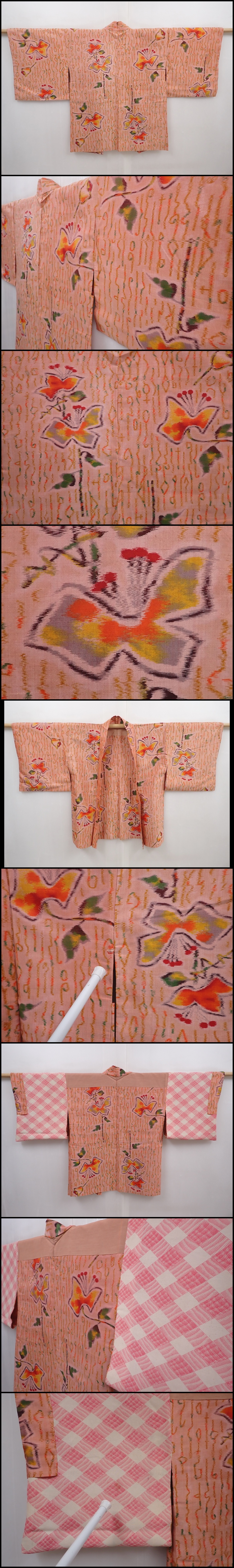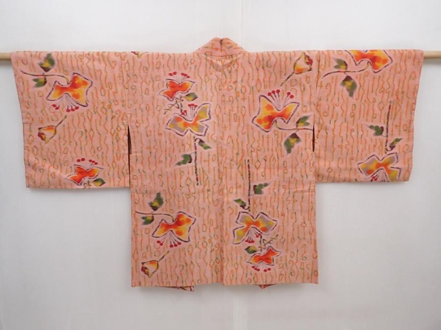 6121T04z340 Vintage Japanese Kimono Silk MEISEN HAORI Flower Dark salmon