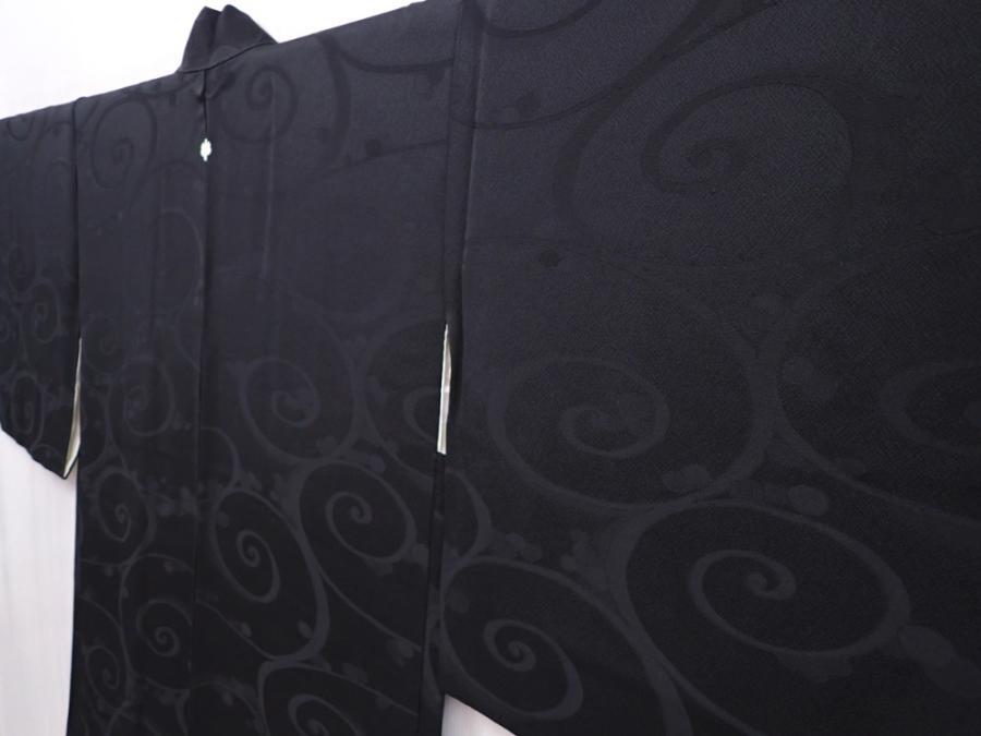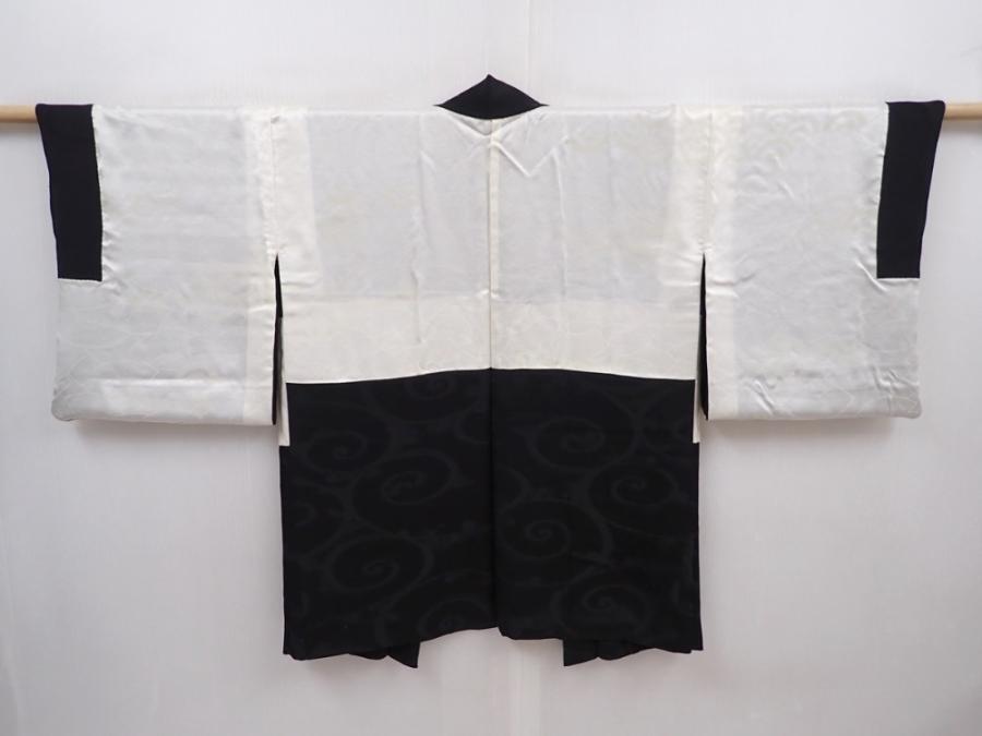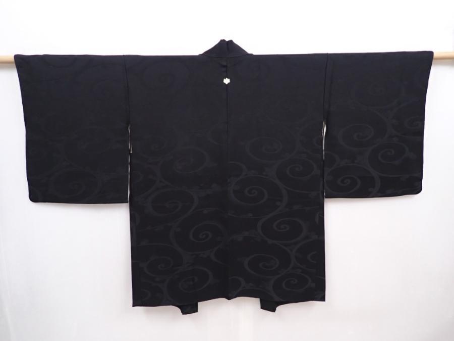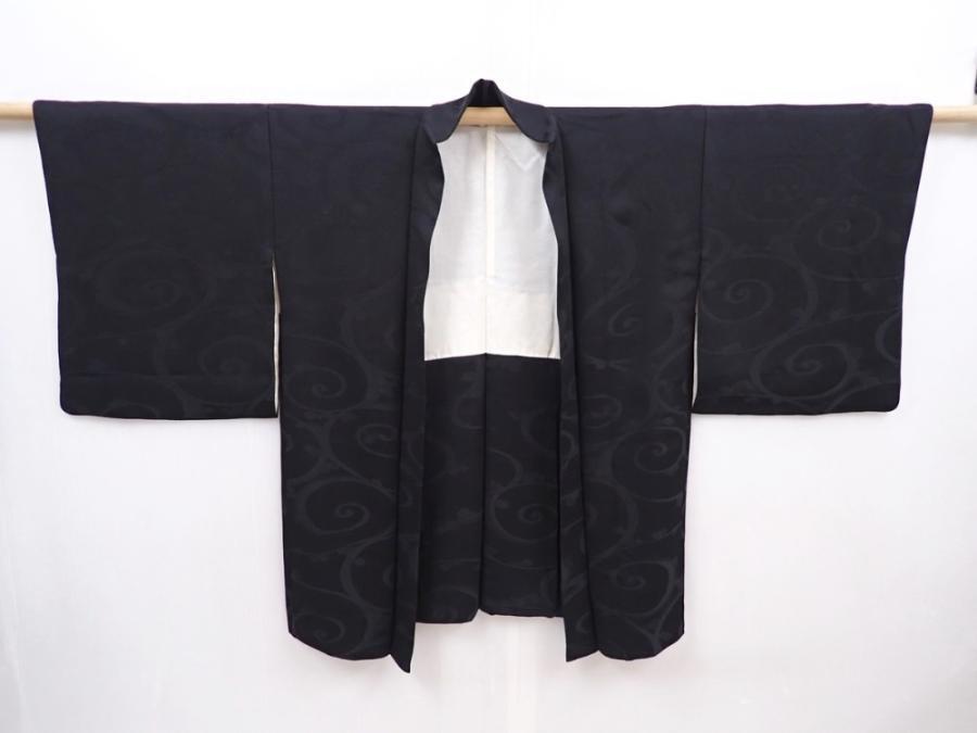 6121T07z620 Vintage Japanese Kimono Silk HAORI Karakusa Black