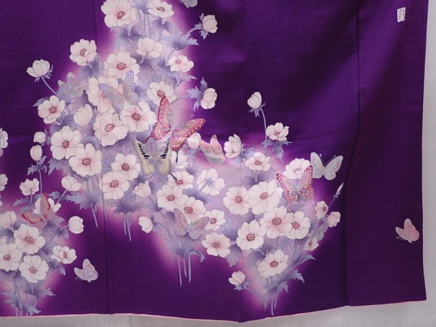 6121T10z1050 Vintage Japanese Kimono Silk FURISODE Butterfly Grape