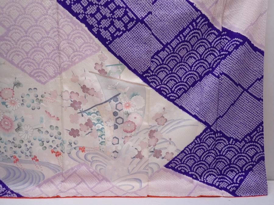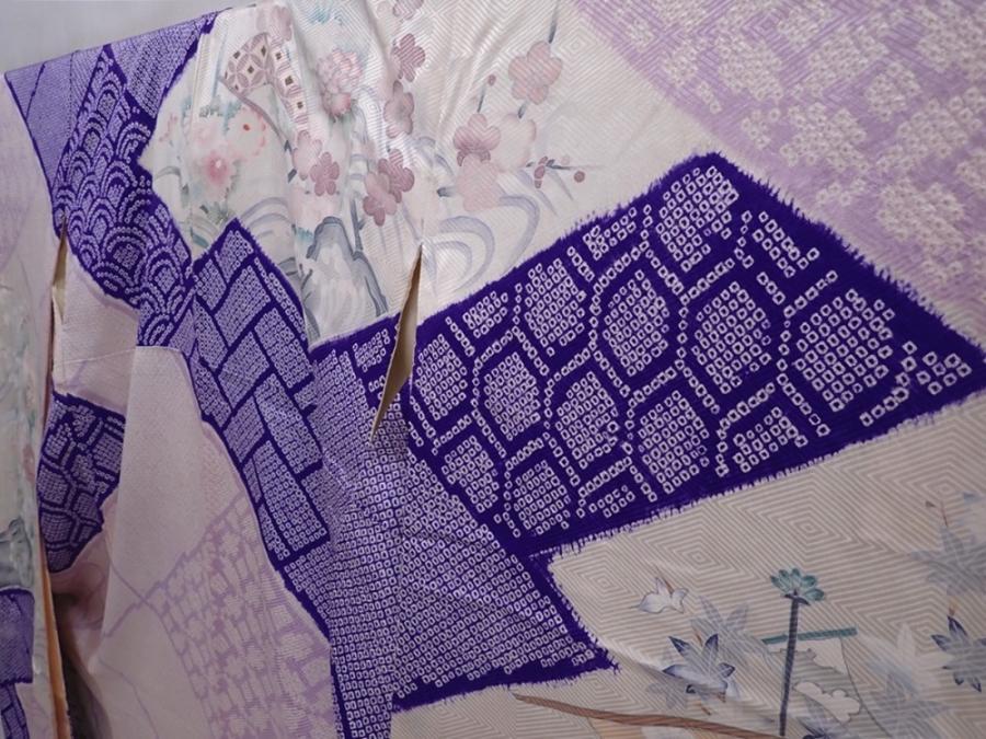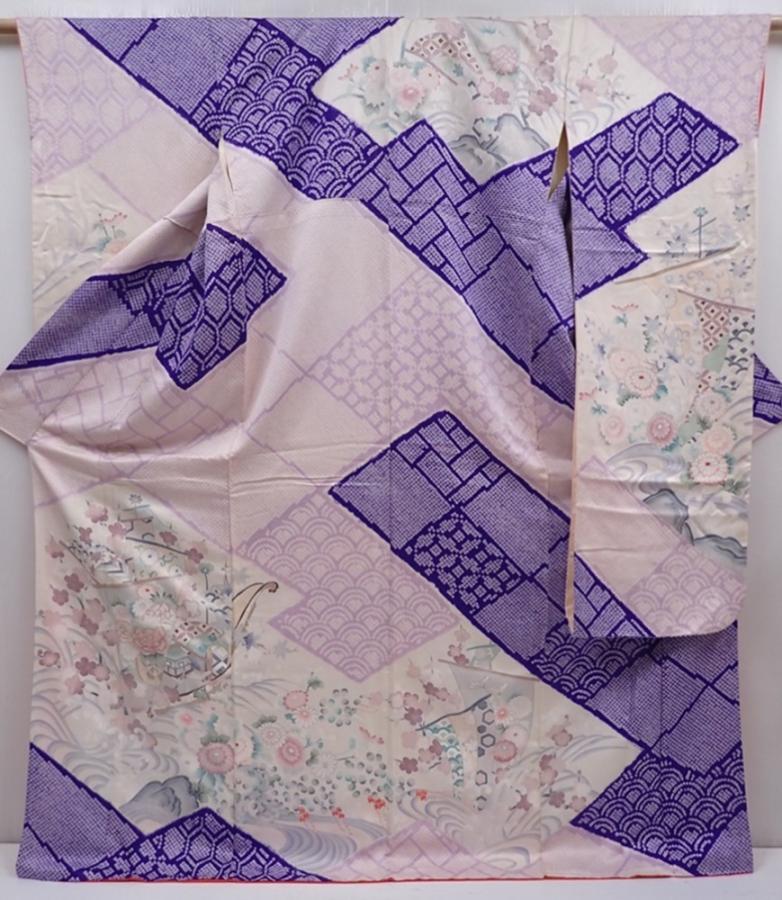 6121T13z1180 Vintage Japanese Kimono Silk FURISODE Ship Light purple