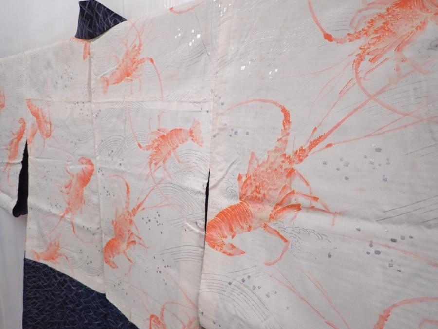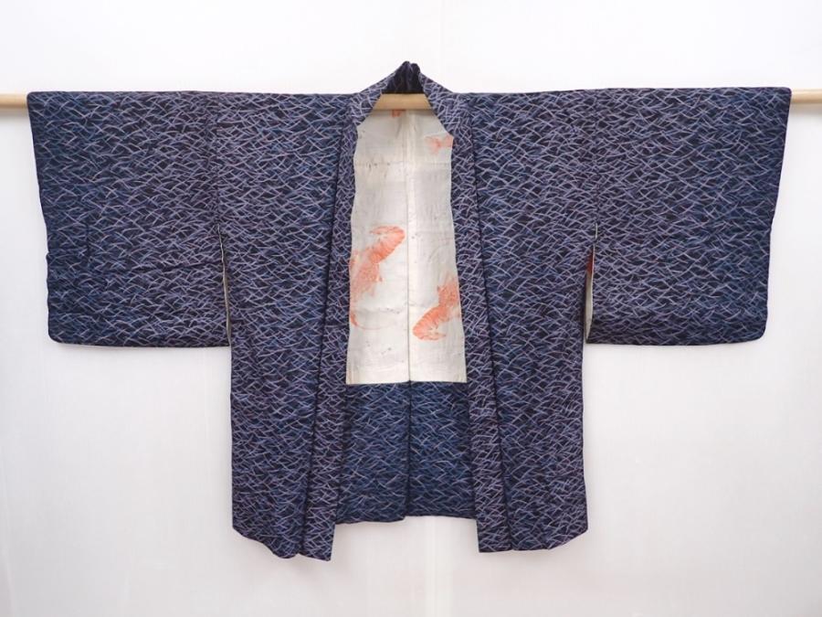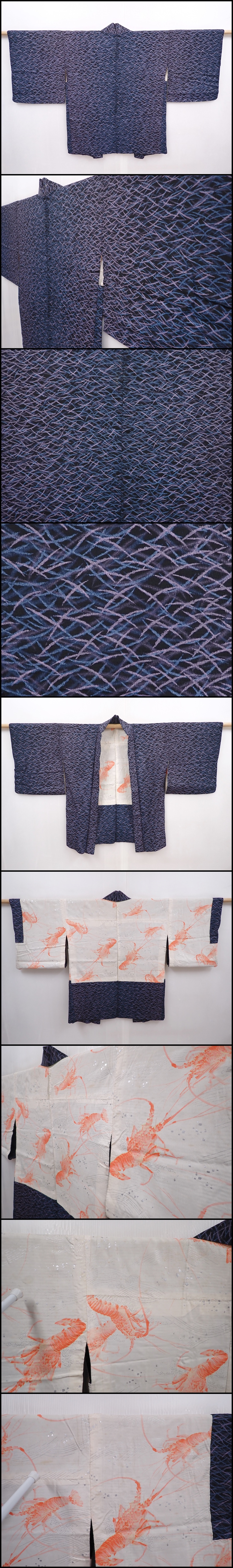 6126T04z360 Vintage Japanese Kimono Silk HAORI Shibakusa Steel blue