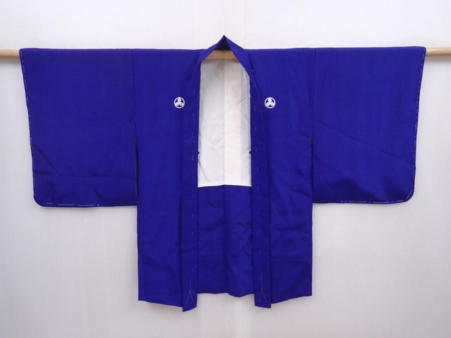 6126T06z460 Vintage Japanese Kimono Silk Kids HAORI Plain Dark lavender blue