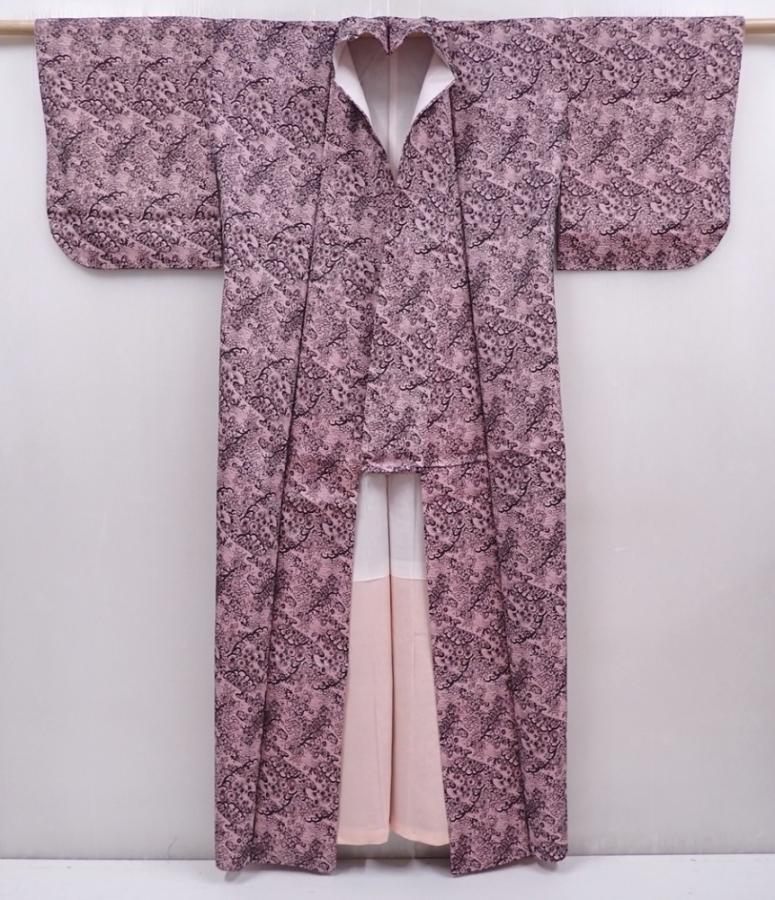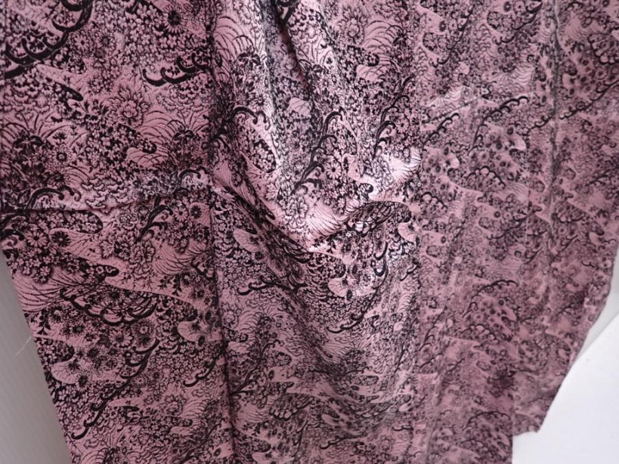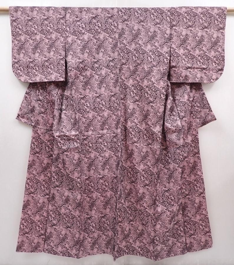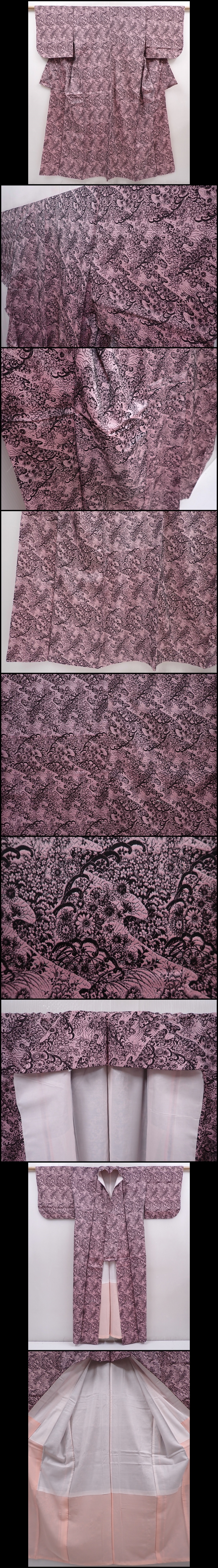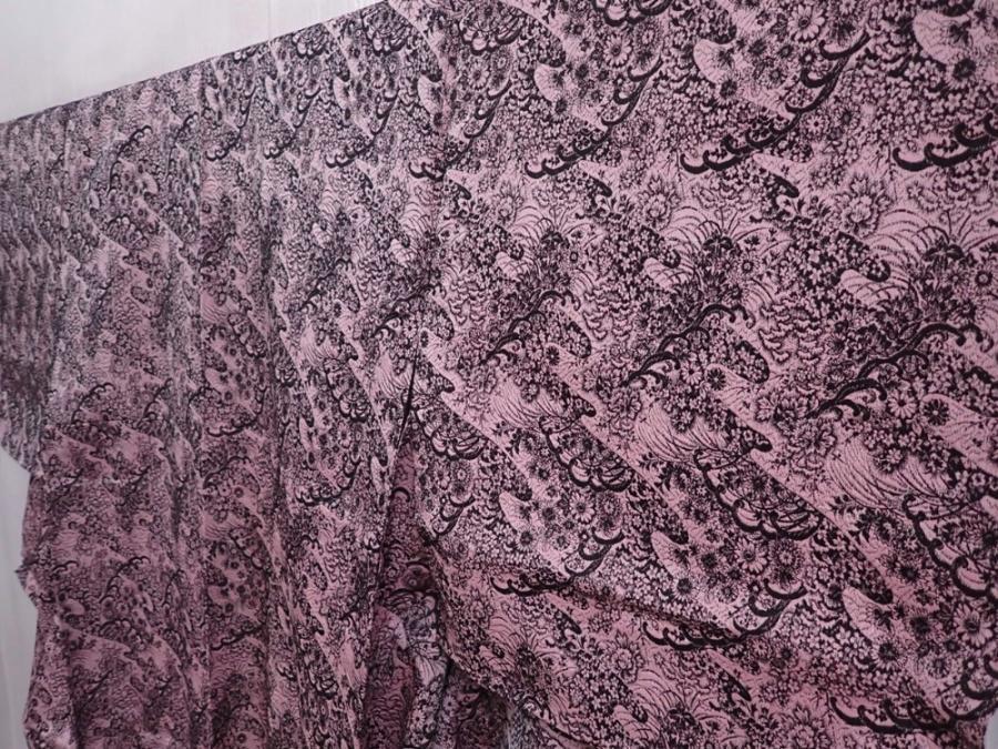 6126T08z900 Vintage Japanese Kimono Synthetic TSUMUGI Flowers Pink