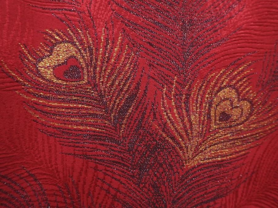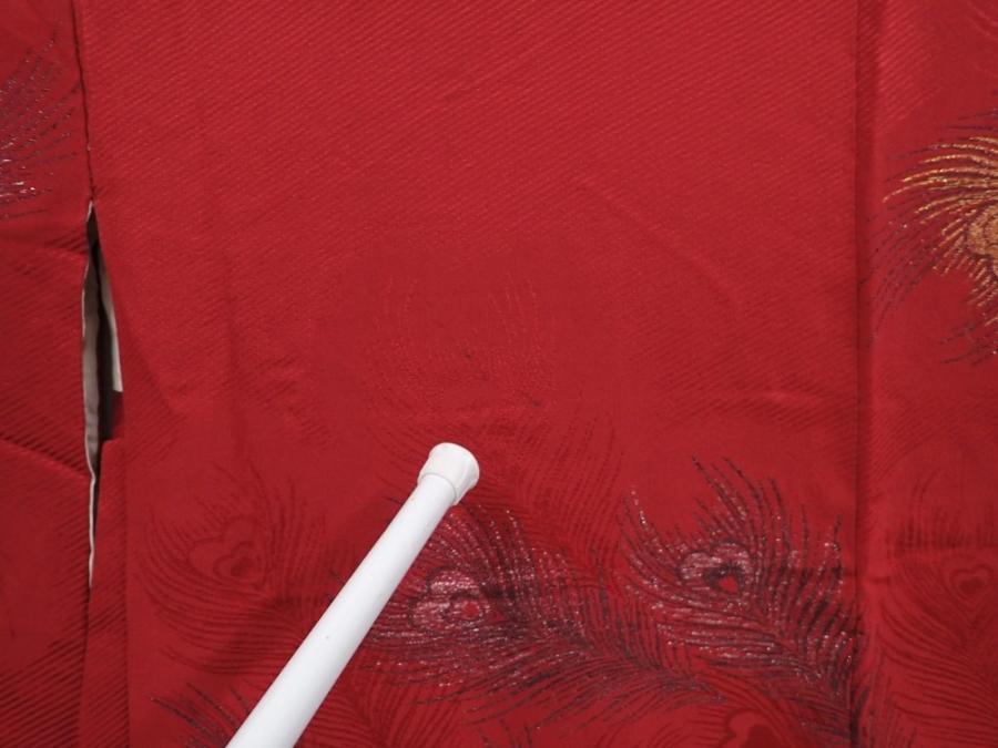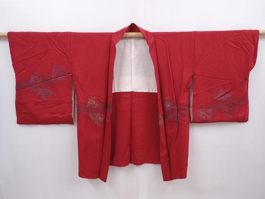 6128T07z560 Vintage Japanese Kimono Silk HAORI Peacock feather Dull red
