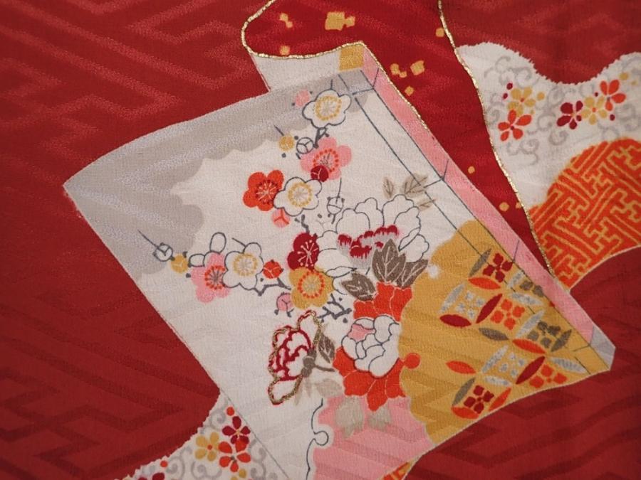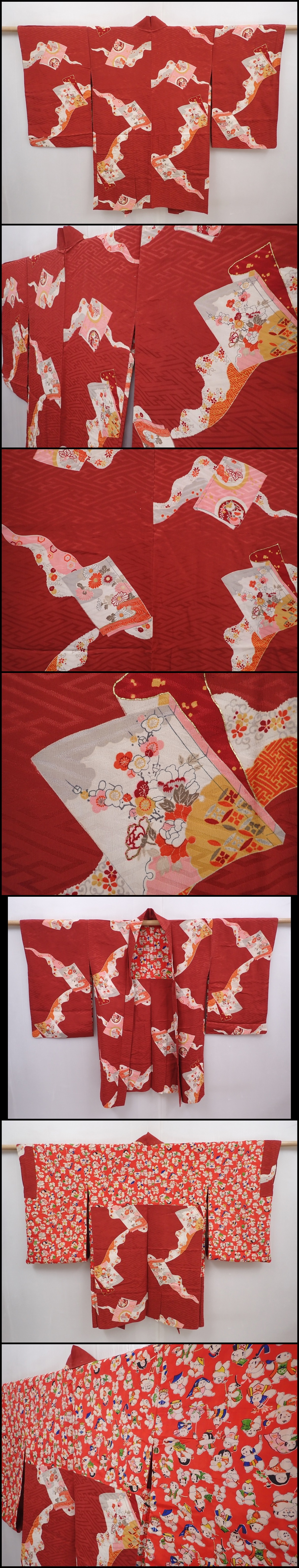 6128T09z430 Vintage Japanese Kimono Silk HAORI Booklet Red-Brown