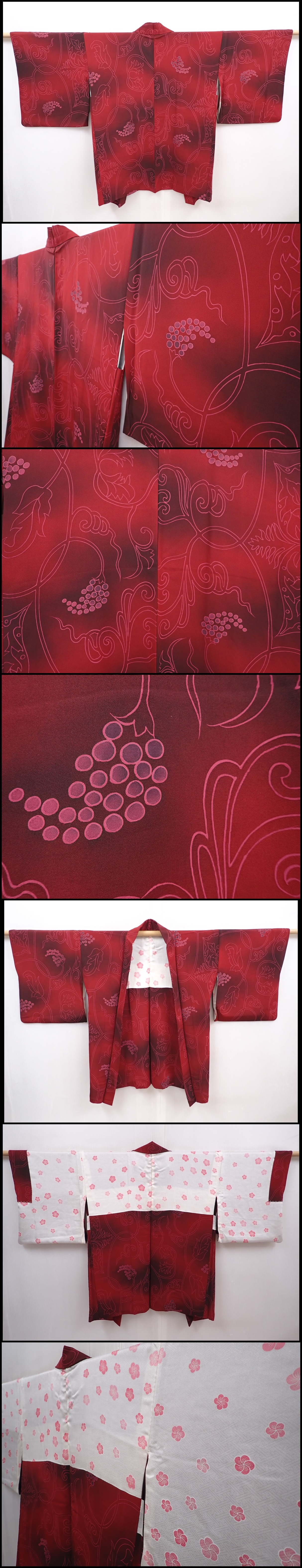 6128T11z610 Vintage Japanese Kimono Silk HAORI Grape Wine red