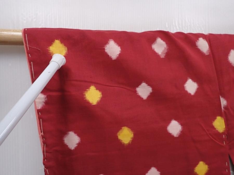 6206T02z650 Vintage Japanese Kimono Silk MEISEN KOMON Dot Red-Brown