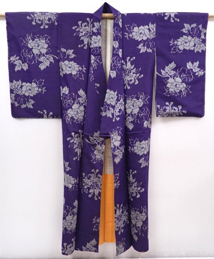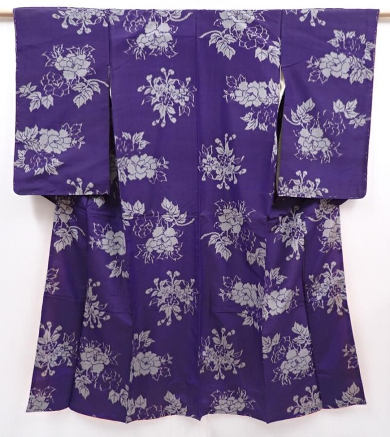 6206T08z460 Vintage Japanese Kimono Silk MEISEN KOMON Dark lavender blue