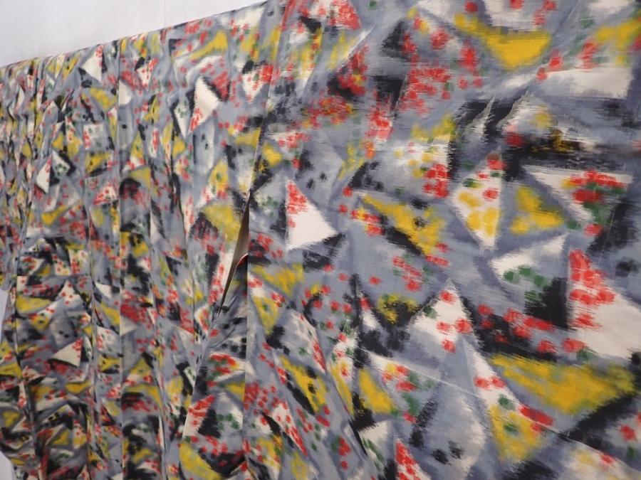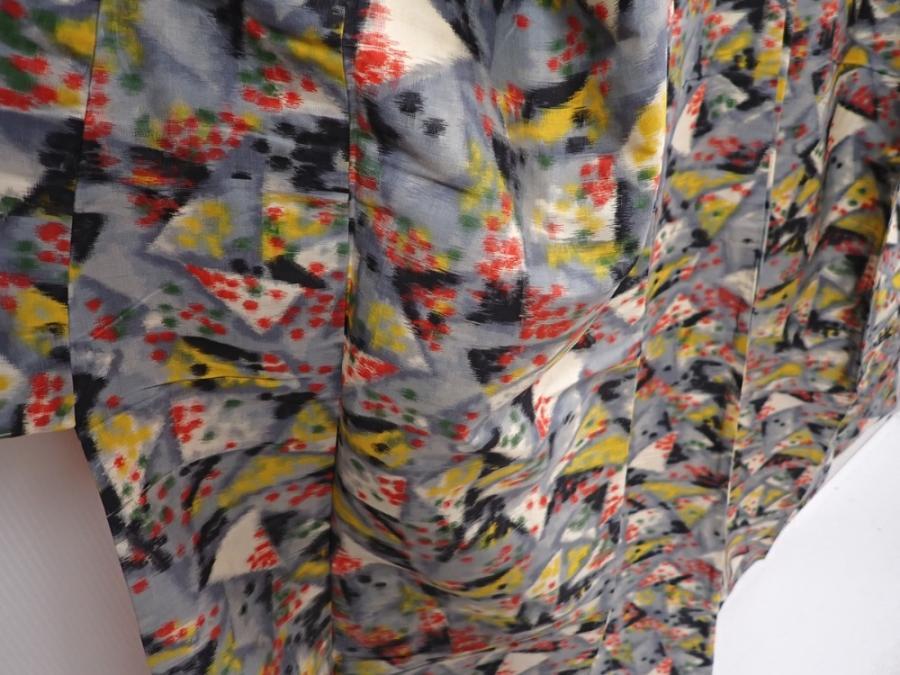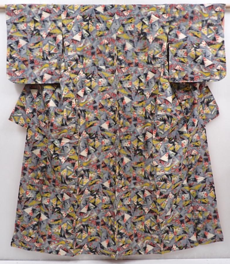 6206T13z670 Vintage Japanese Kimono Silk MEISEN KOMON Gray