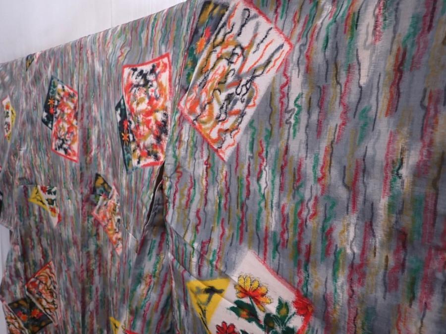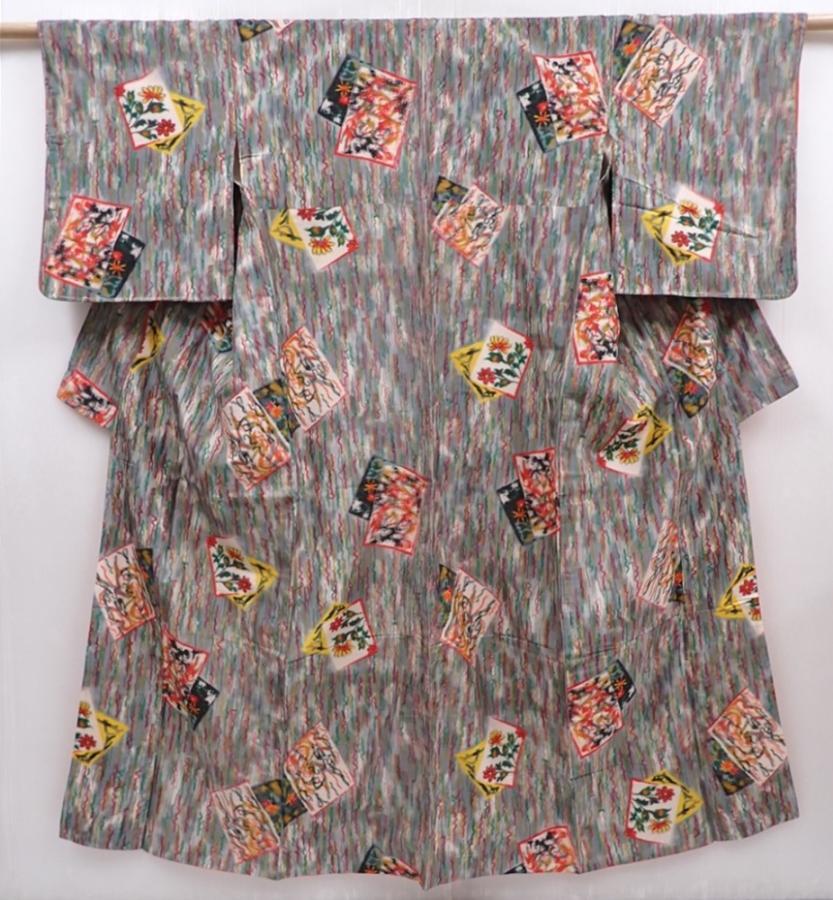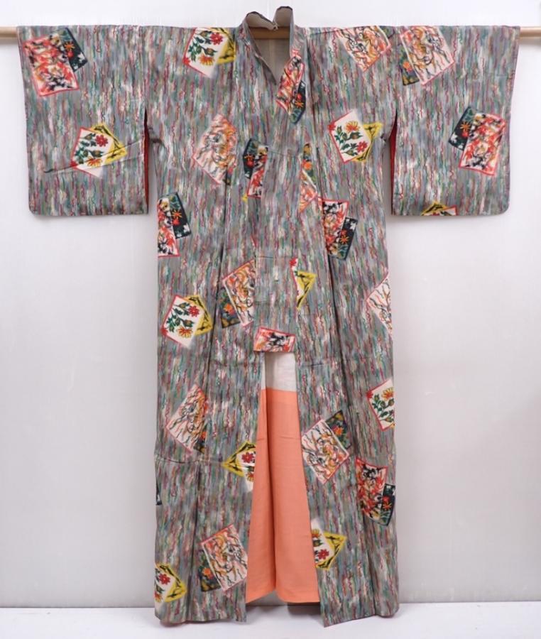 6206T14z670 Vintage Japanese Kimono Silk MISEN KOMON Flower Gray