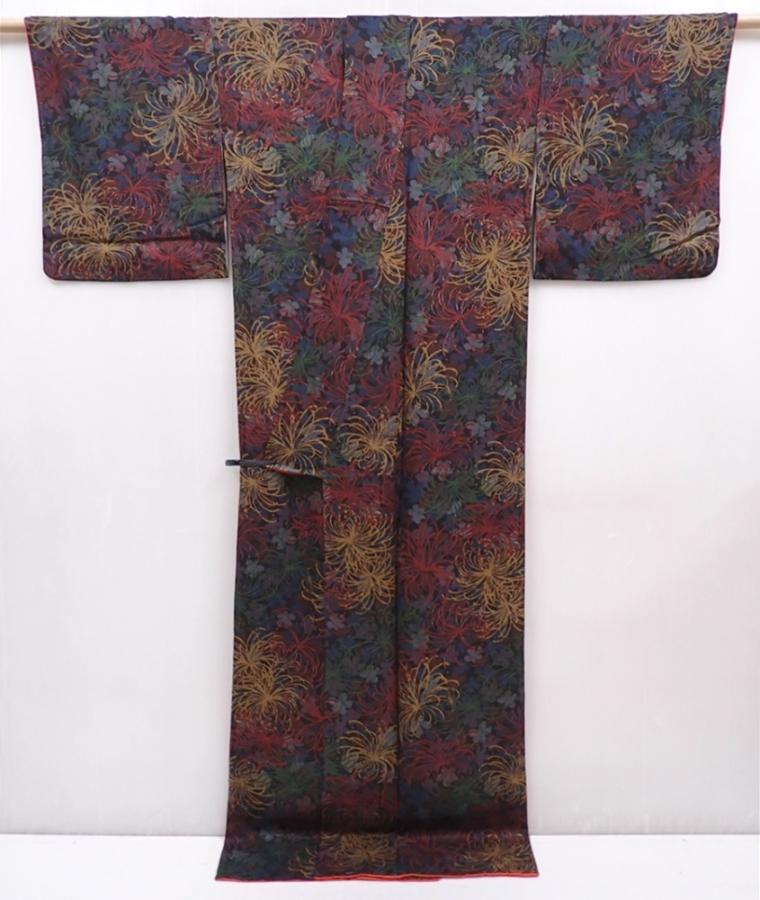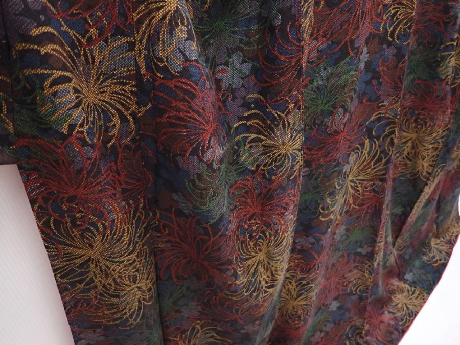 6210T05z920 Vintage Japanese Kimono Silk KOMON Chrysanthemum Black