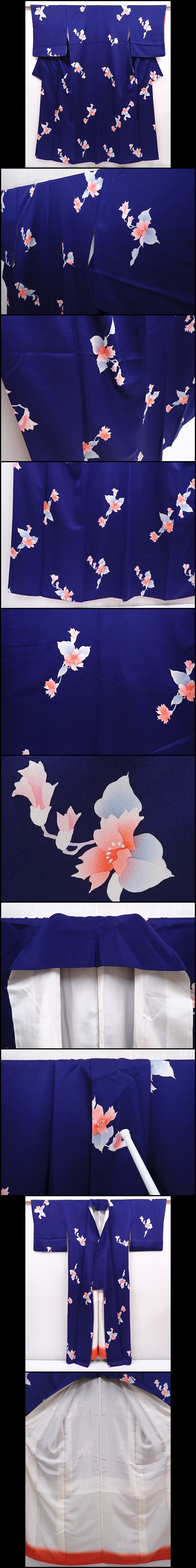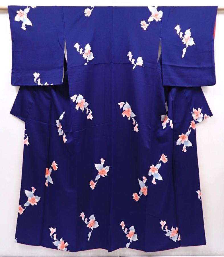 6210T13z870 Japanese Kimono Silk KOMON Flower Dark lavender blue