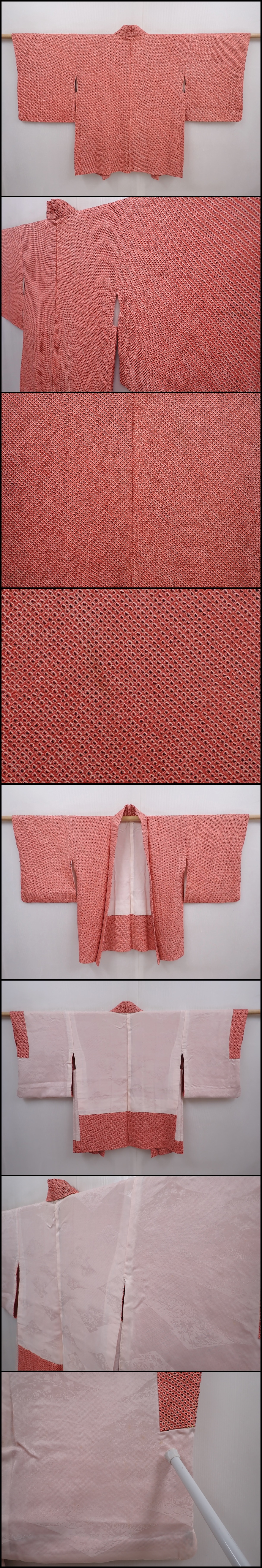 6216T07z460 Vintage Japanese Kimono Silk SHIBORI HAORI Coral pink