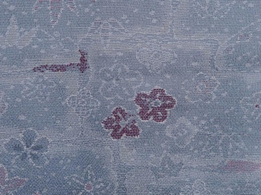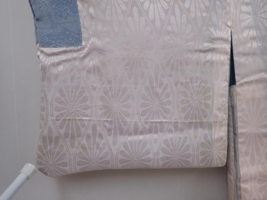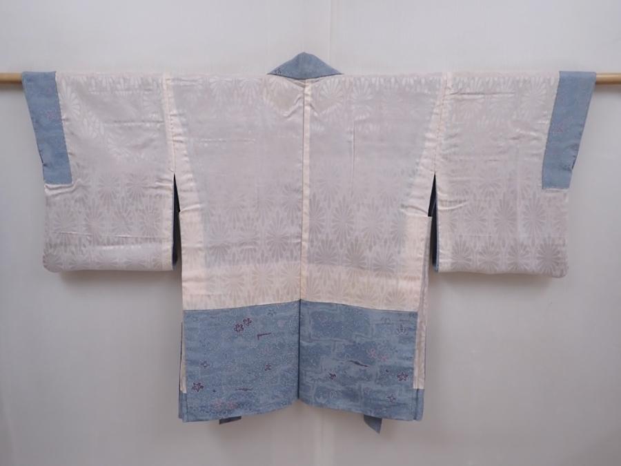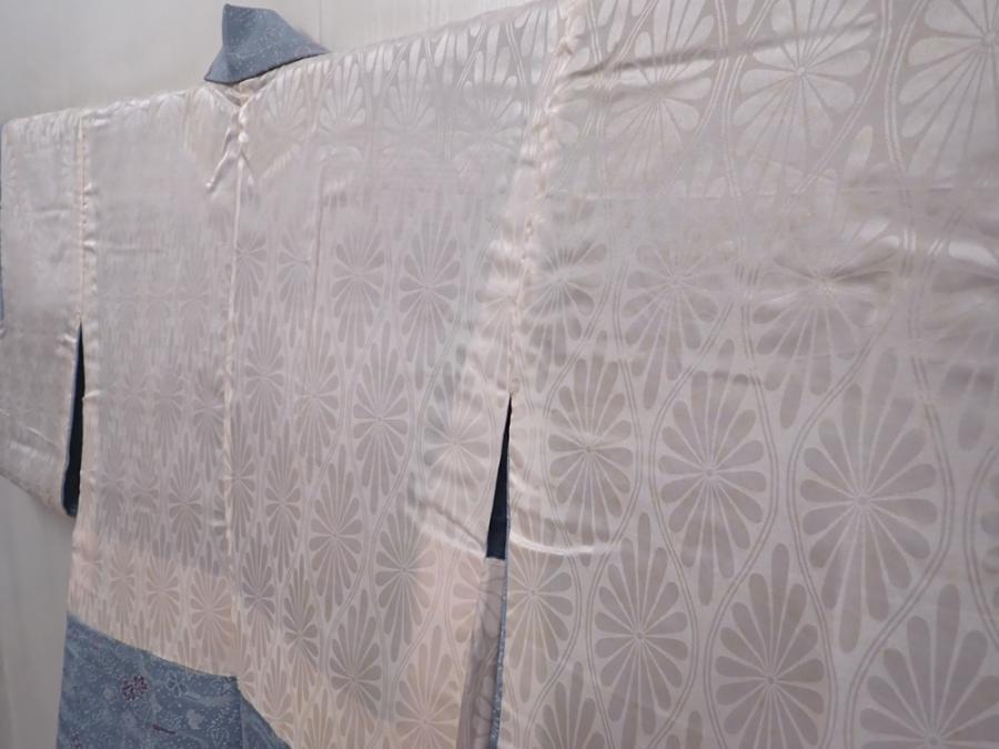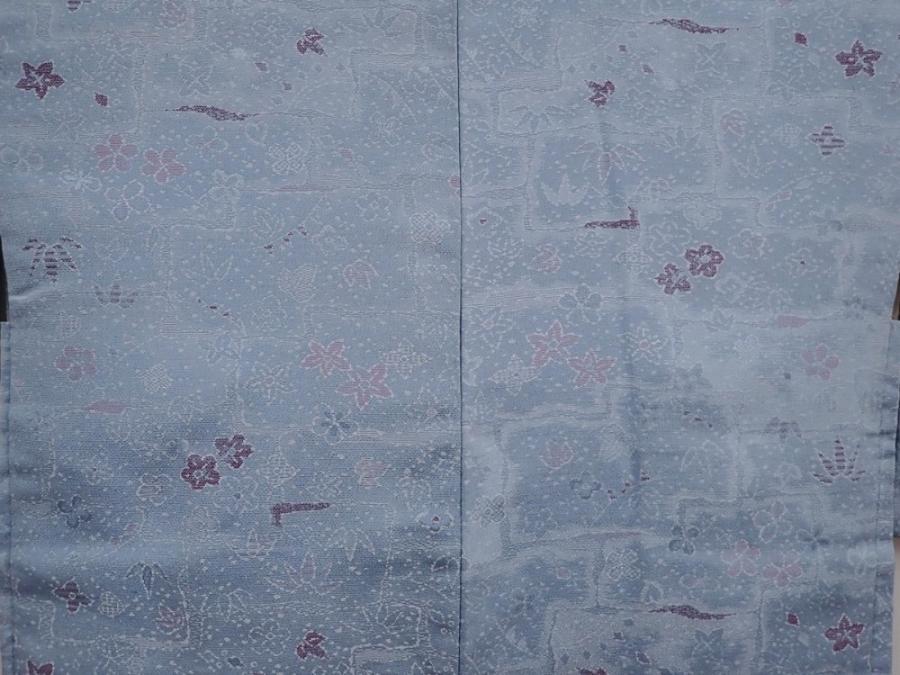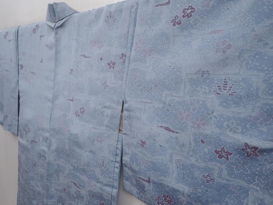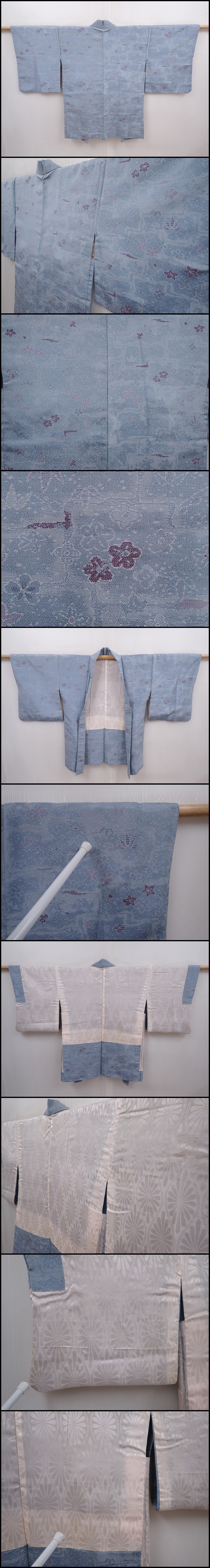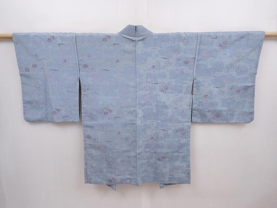 6216T08z590 Vintage Japanese Kimono Silk HAORI Flowers Steel blue