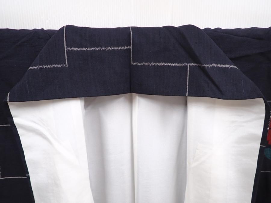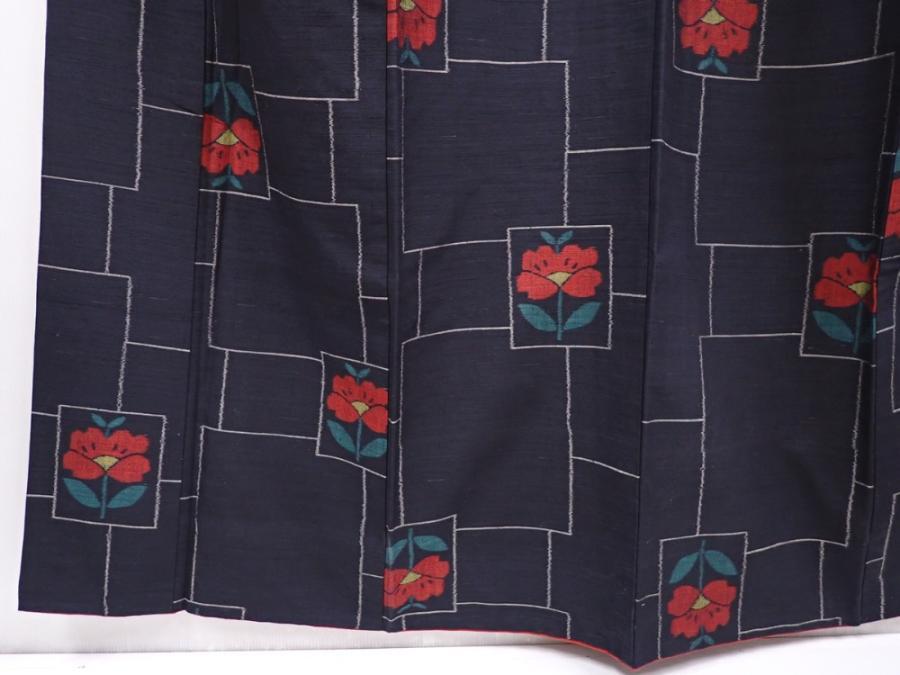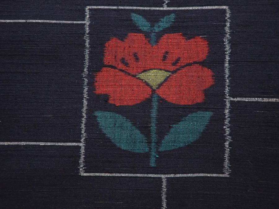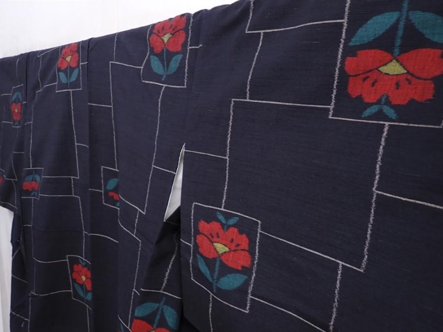 6216T11z820 Vintage Japanese Kimono Silk TSUMUGI Camellia Black