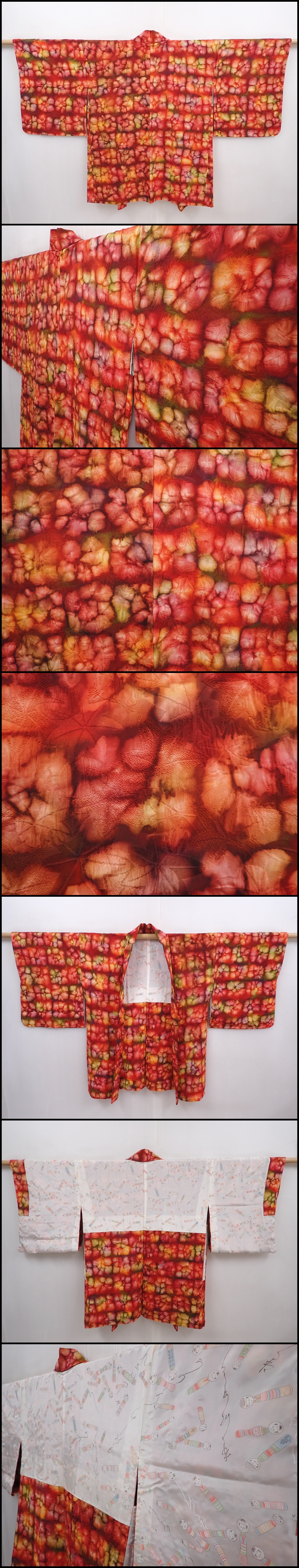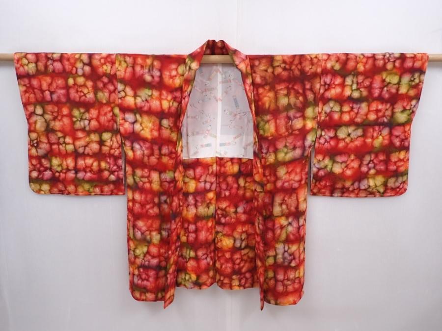 6218T05z610 Vintage Japanese Kimono Silk HAORI Dull red