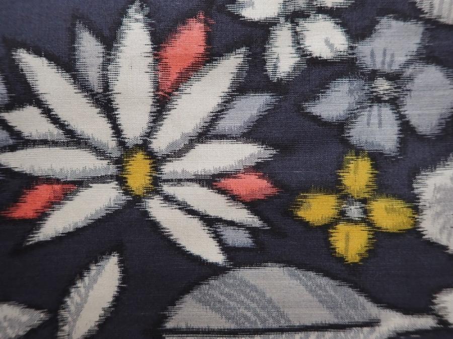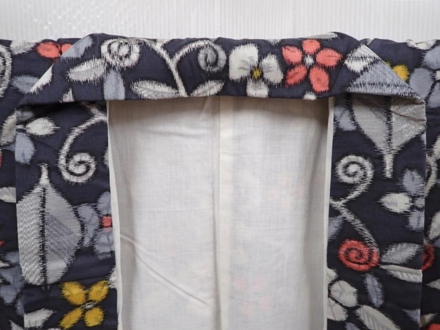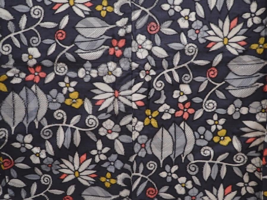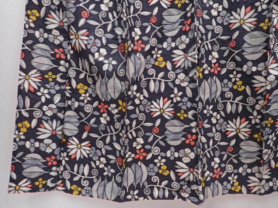 6218T09z650 Vintage Japanese Kimono Silk MEISEN KOMON Flowers Dark gray