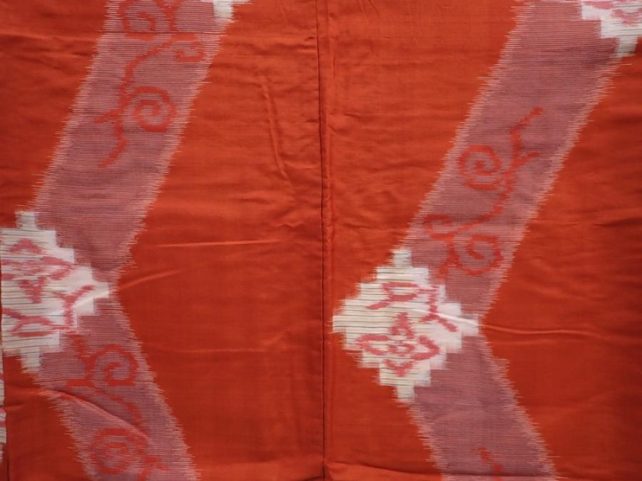 6218T11z690 Vintage Japanese Kimono Silk MEISEN KOMON Flower Orange-Red