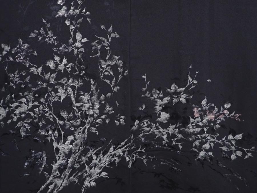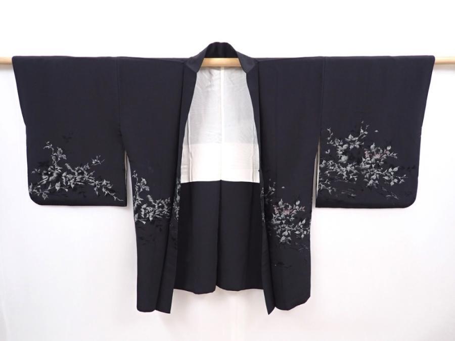 6219T08z610 Vintage Japanese Kimono Silk HAORI Tree Black