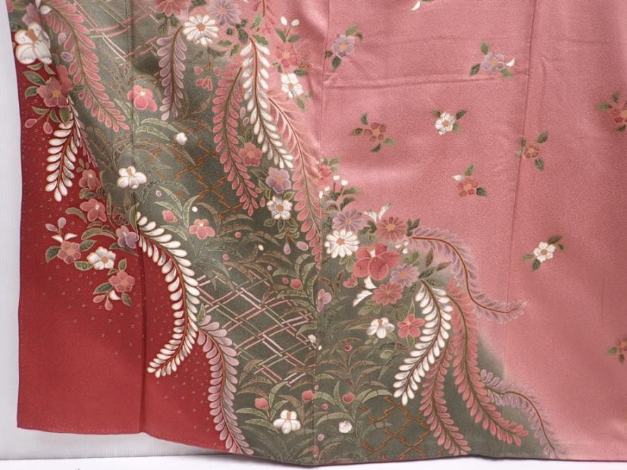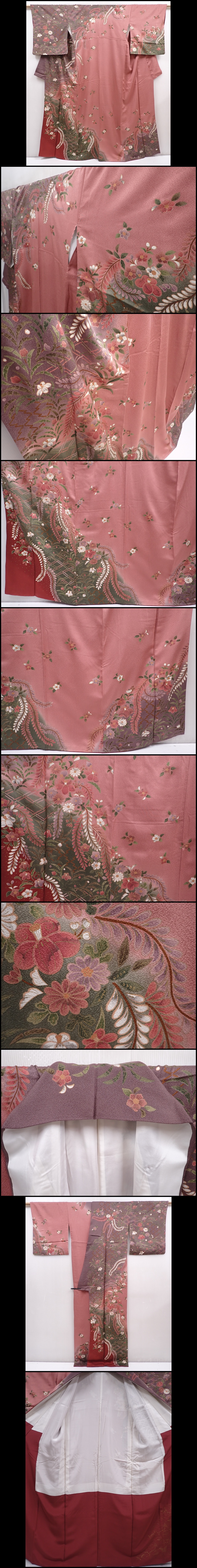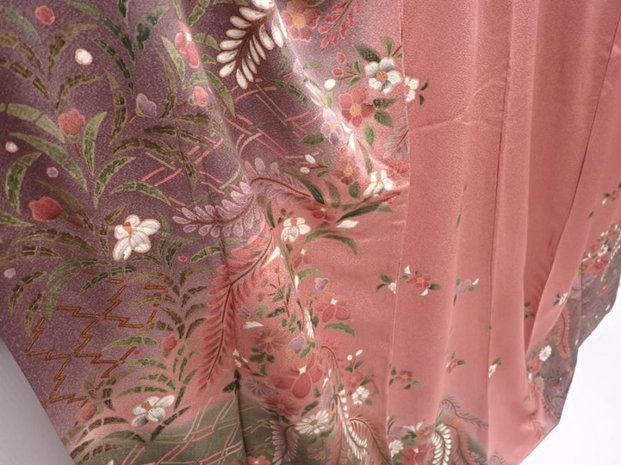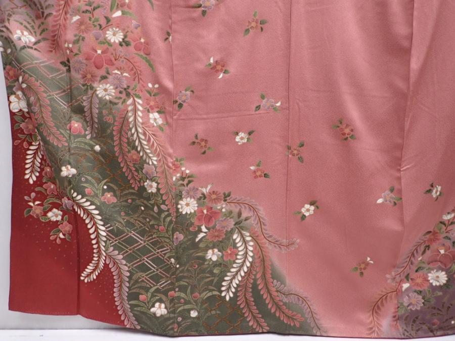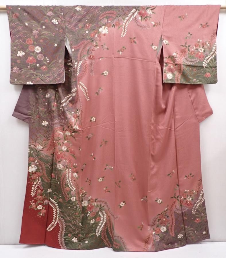 6219T11z1010 Japanese Kimono Silk TSUKESAGE Flowers Dark pink